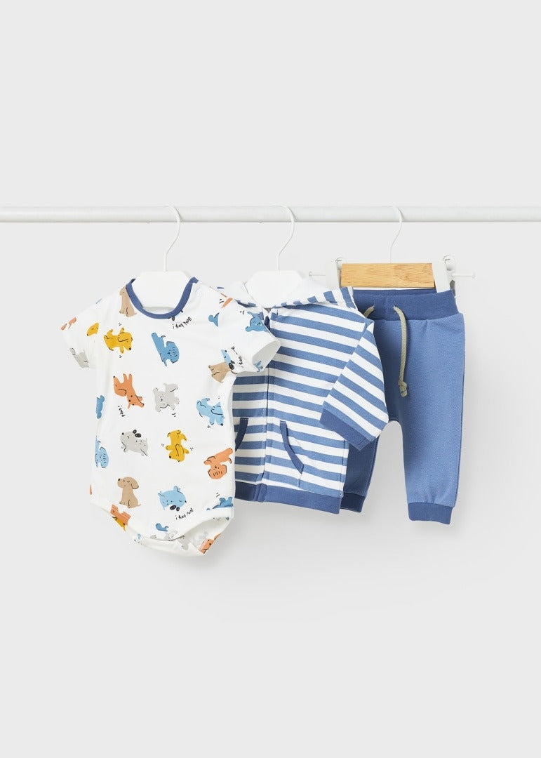 MAYORAL 3-PACK COTTON NEWBORN TRACKSUIT - TWILL BLUE