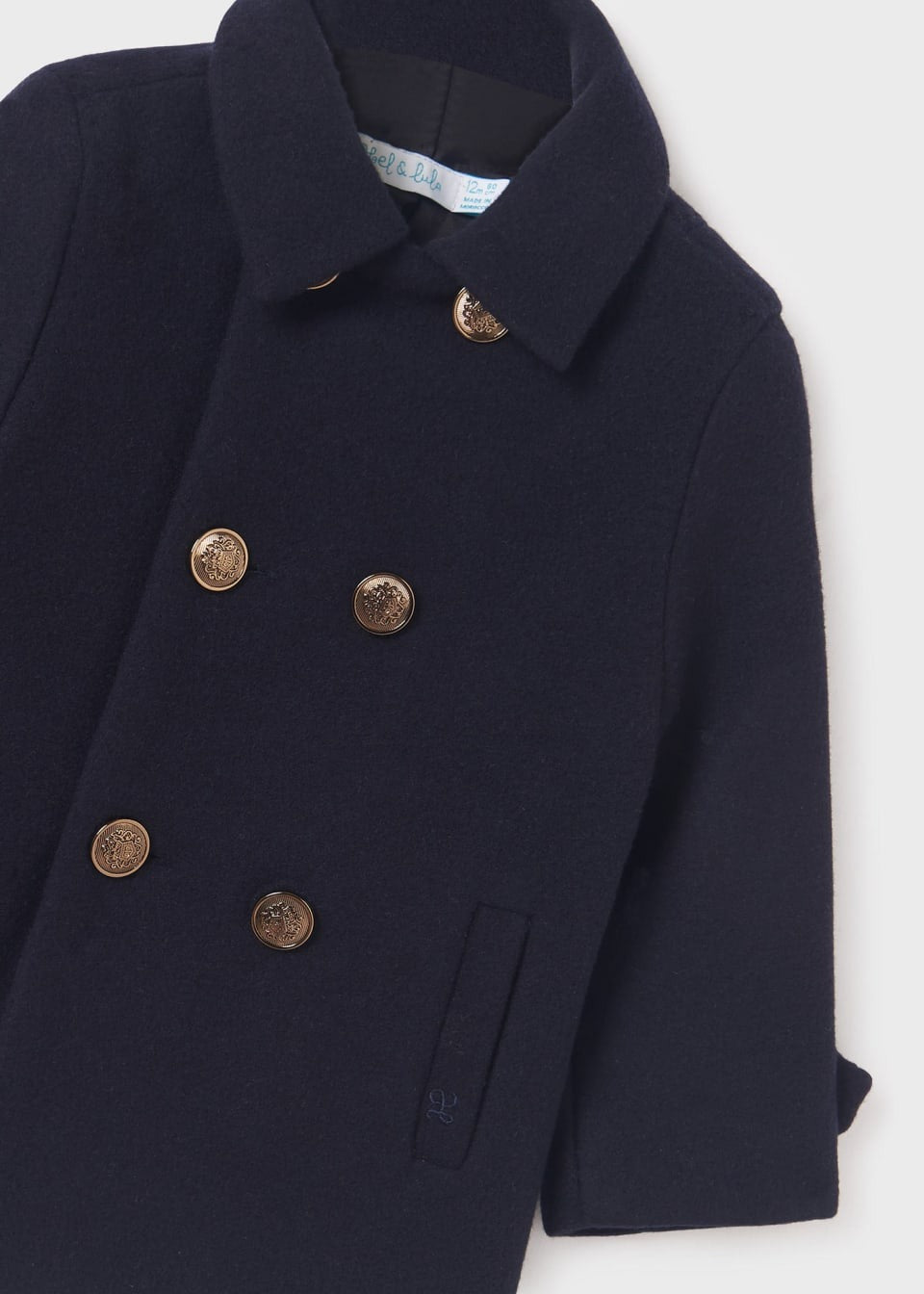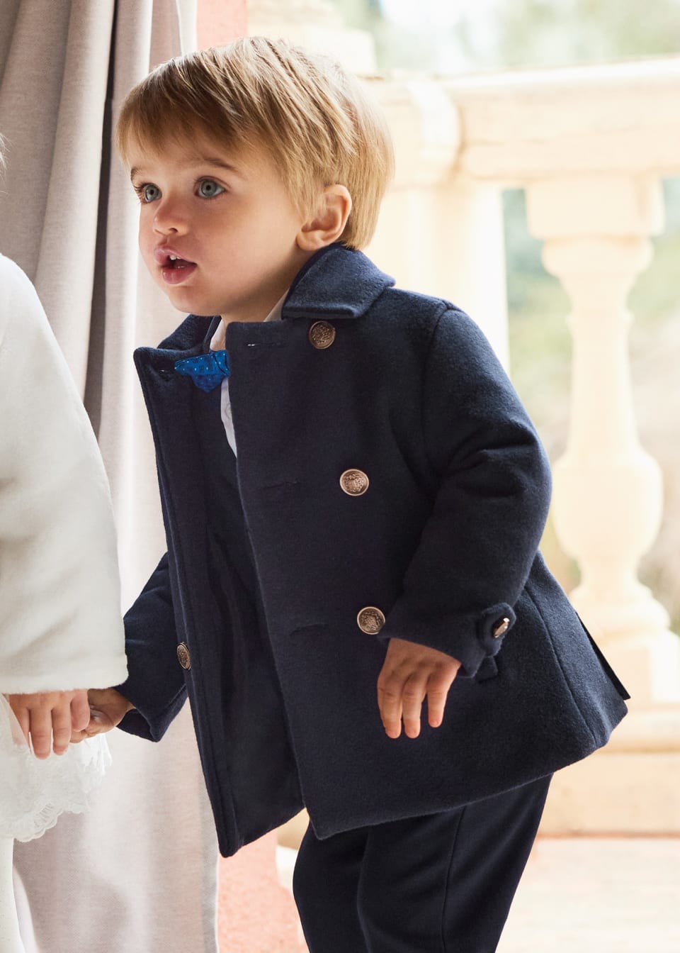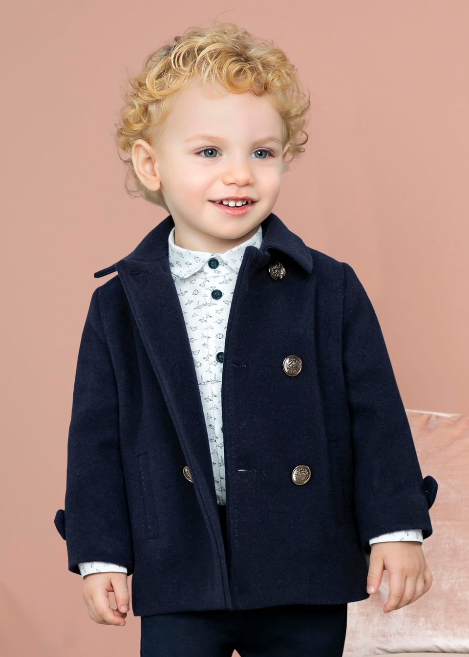 The Navy Blue Wool Coat is the perfect coat for your toddler and pairs perfectly with the Milano Navy Knit Trousers