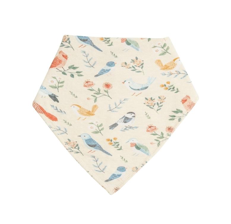 Introducing the Angel Dear American Birds Bandana Bib . Created from bamboo fiber/ cotton muslin, these silky-soft bibs are ideal for your baby's sensitive skin. Wonderfully soft and naturally absorbent these bibs are perfect for cleaning up life's little messes. Paired with our coordinating blankies and outfits it's the perfect gift for any new mother.