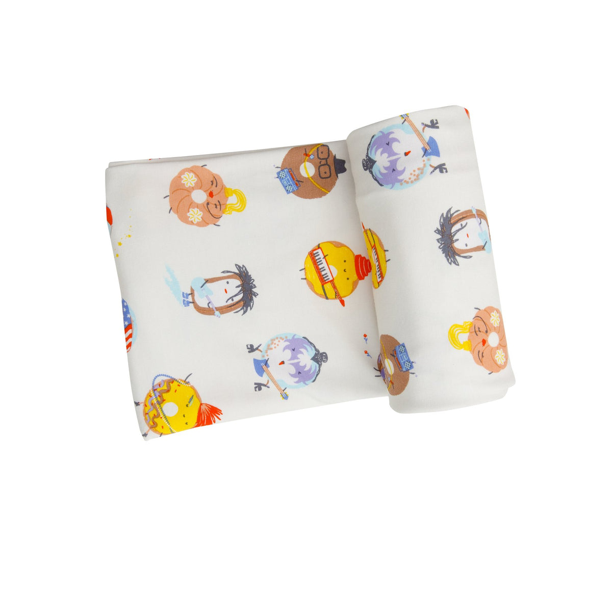 Snuggle, Swaddle, Sleep, Repeat. Our soft and adorable Angel Dear Baby 80's Donuts Swaddle Blanket is sure to delight everyone! A versatile design that's great for swaddling, nursing, cuddling and so much more.