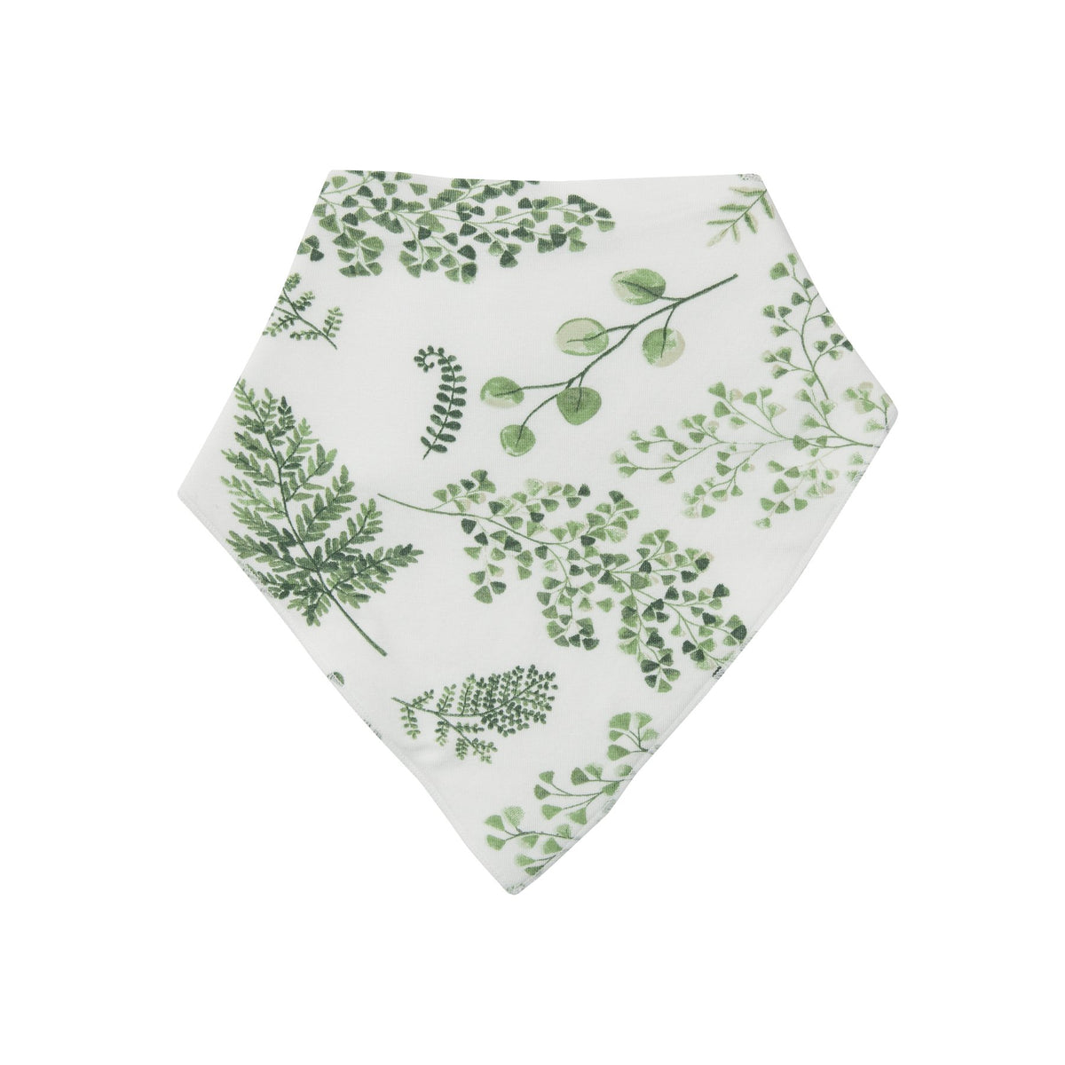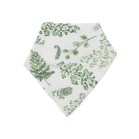 Introducing the Angel Dear Ferns Bandana Bib . Created from bamboo fiber/ cotton muslin, these silky-soft bibs are ideal for your baby's sensitive skin. Wonderfully soft and naturally absorbent these bibs are perfect for cleaning up life's little messes. Paired with our coordinating blankies and outfits it's the perfect gift for any new mother.