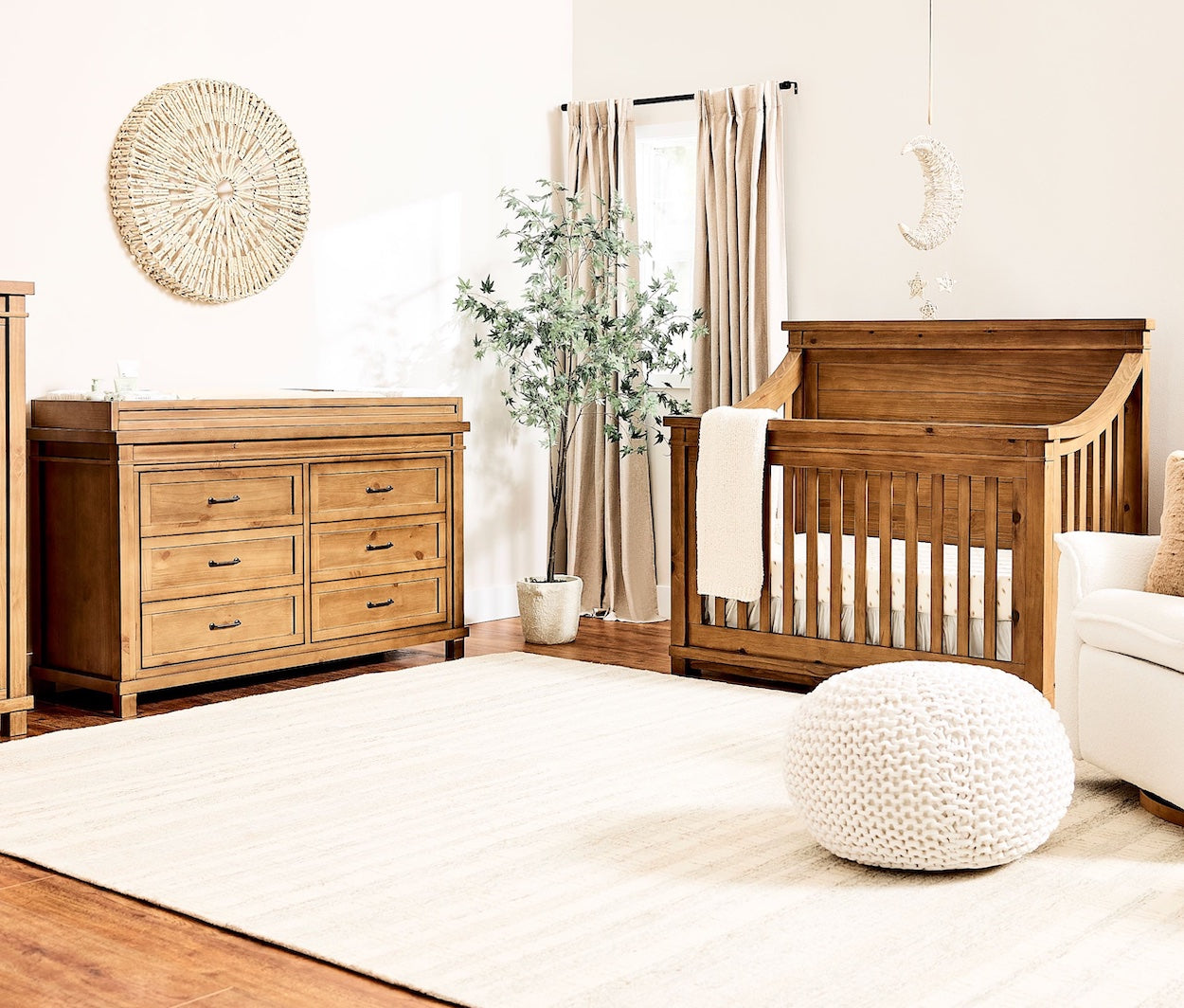 Elevate the natural beauty of your nursery with the Appleseed Rowan 4-in-1 Flat Top Convertible Crib. Its gentle, gracefully curved sides and rustic wood paneling details effortlessly complement boho and farmhouse design aesthetics. For those seeking a more timeless, country cottage ambiance, our brand-new white color option is the perfect choice.