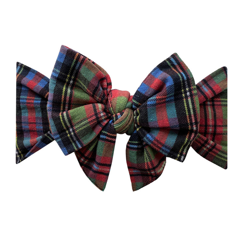 BABY BLING BOWS PRINTED DEB HEADBAND - HOLIDAY PLAID
