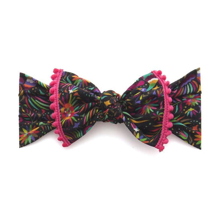 Introducing the Baby Bling Bows Trimmed Printed Knot Cinco Bird + Hot Pink Pom. Our best selling Knot style headband with a stylish mini trim added to make it the ultimate accessory!