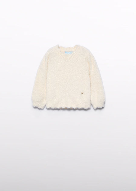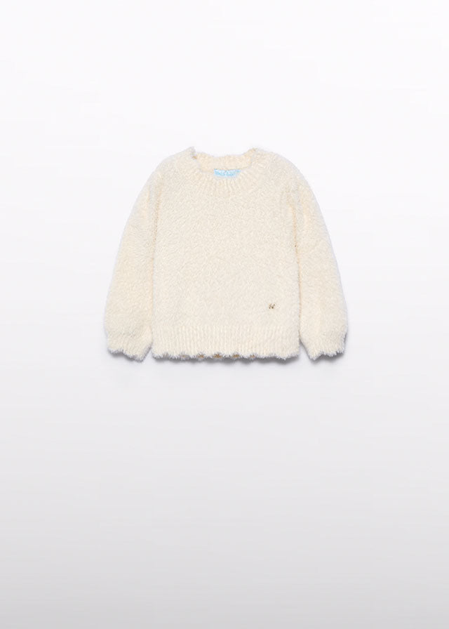 This Abel & Lula Baby Fuzzy Sweater in Cream is the perfect top for your toddler