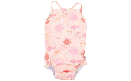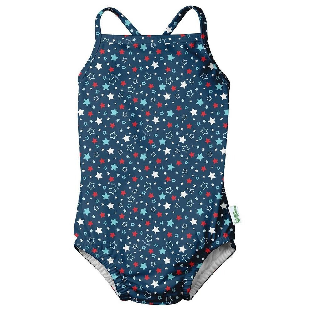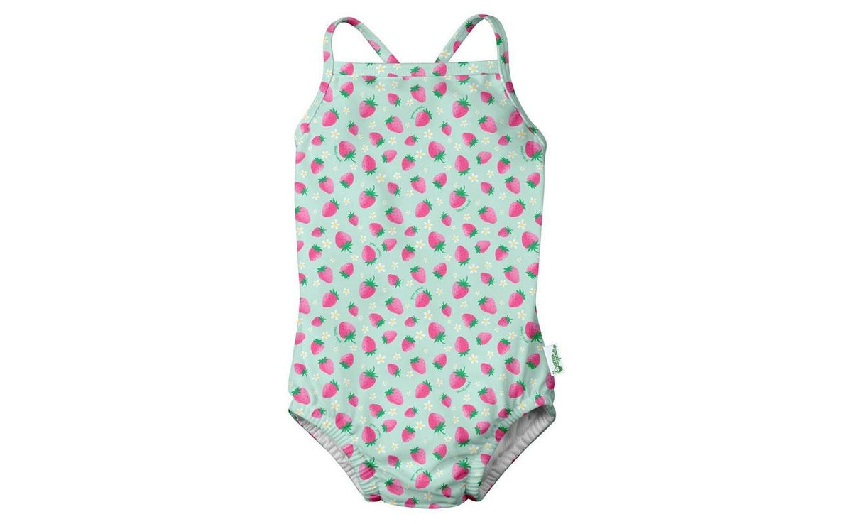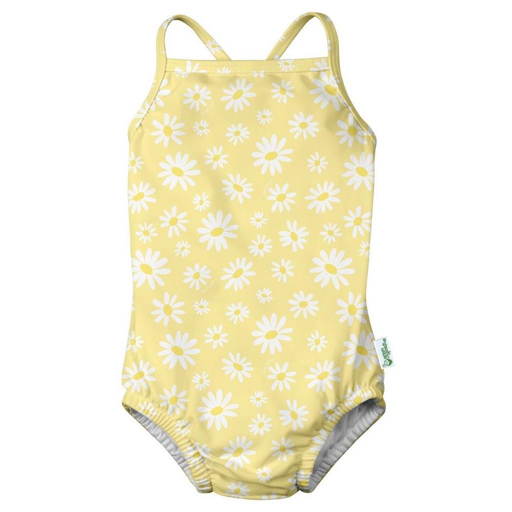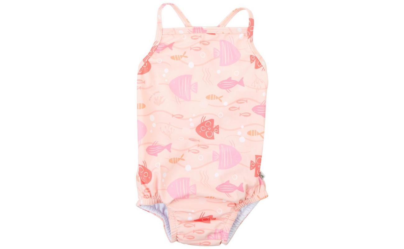 Green Sprouts offers fabulous fashion for stylish little boys and girls. This one piece swimsuit features diaper lining, crisscross back straps, and a print design.