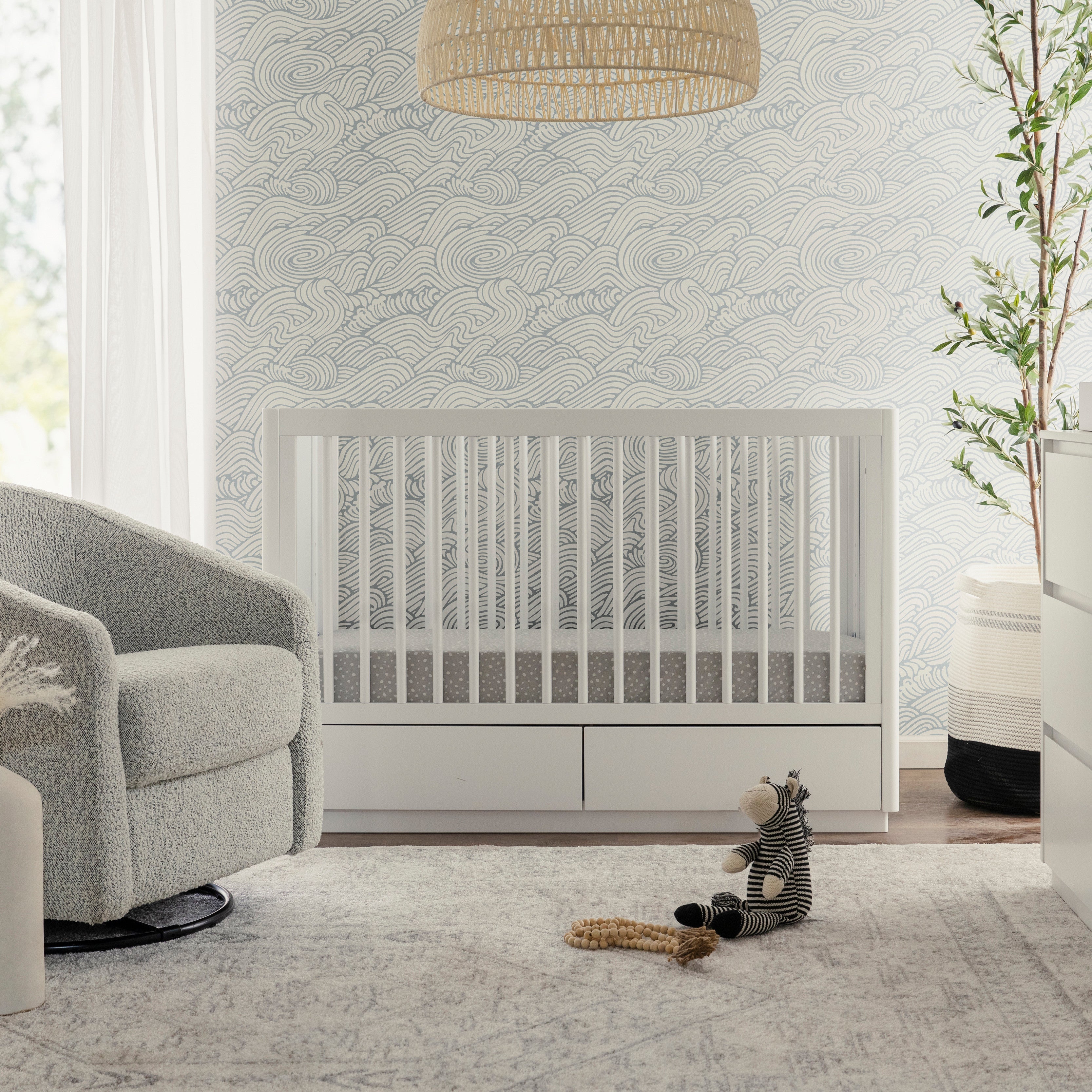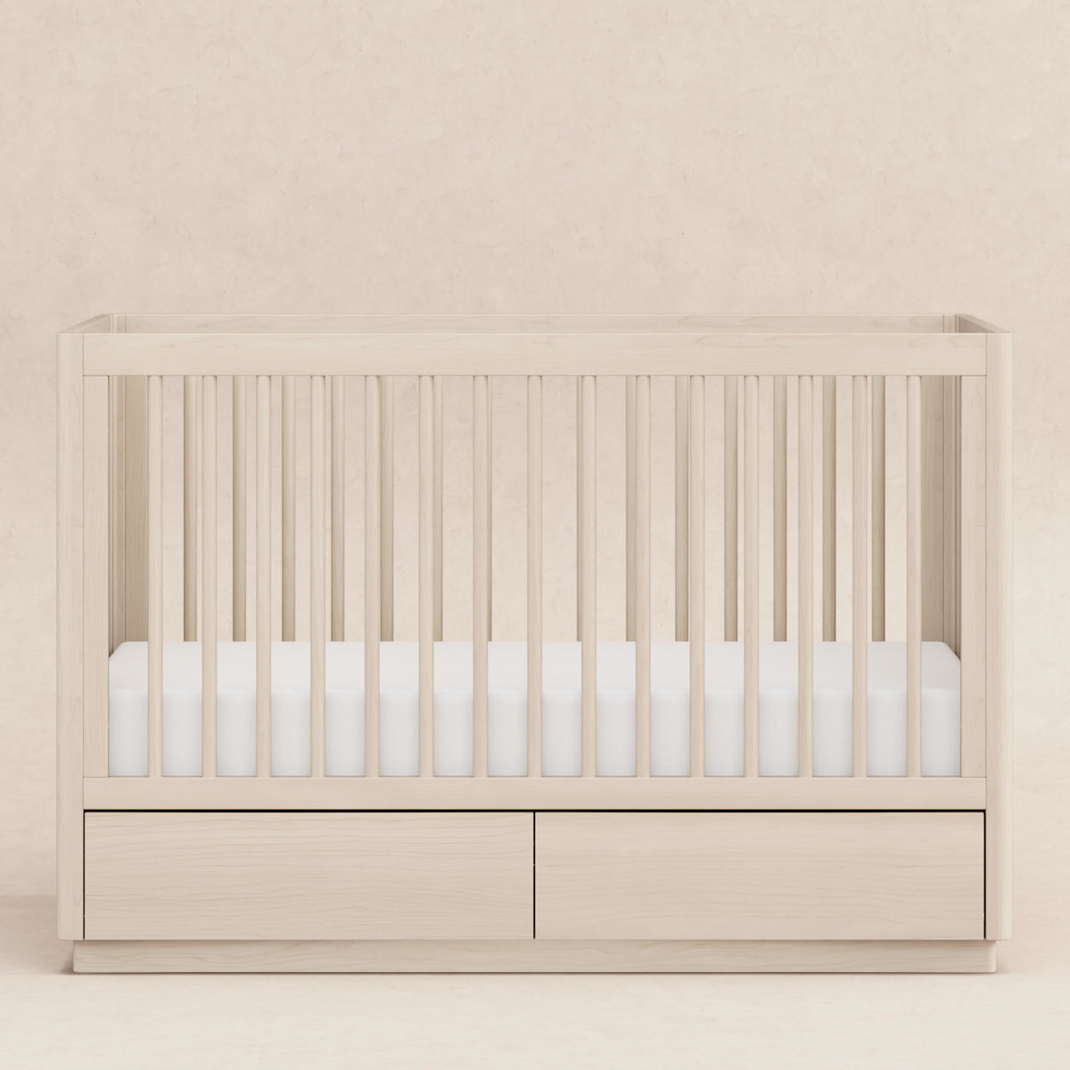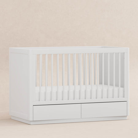 The Bento 3-in-1 Convertible Storage Crib celebrates modern minimalism with softly curved edges, hidden drawer pulls, and raised platform base. It's the thoughtful details that set this crib apart with two under-crib storage drawers and included toddler bed conversion kit. Made with sustainable New Zealand pine wood and screened for harmful chemical emissions to ensure it meets GREENGUARD Gold Certification.