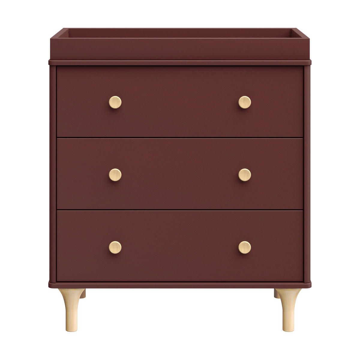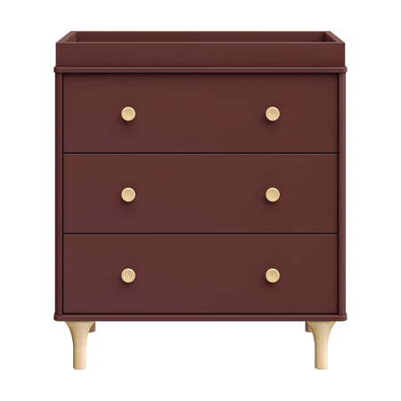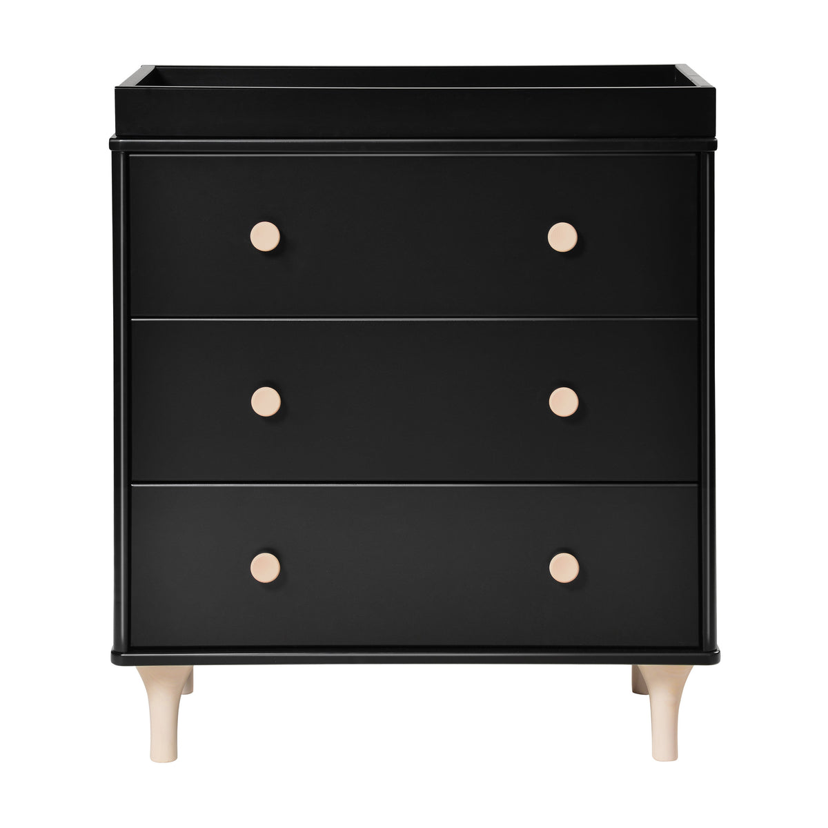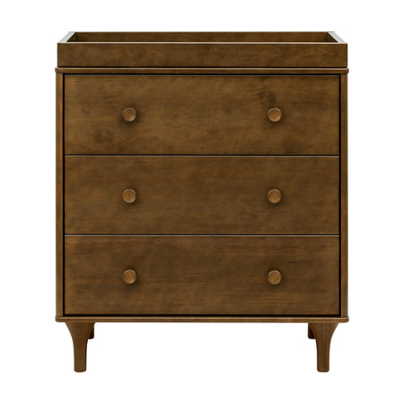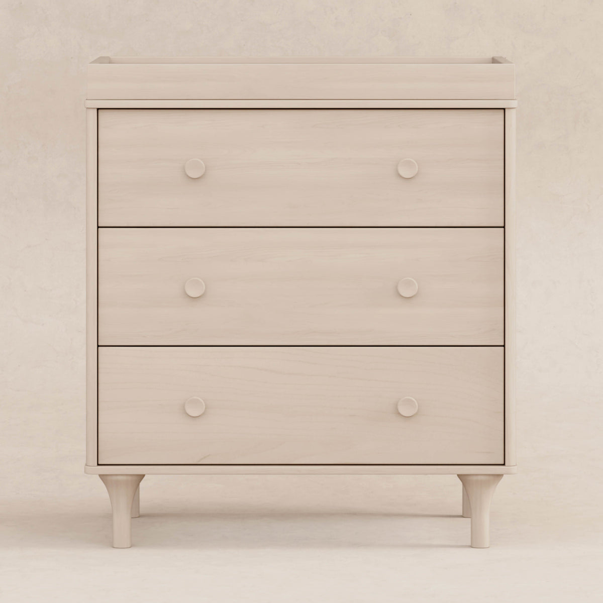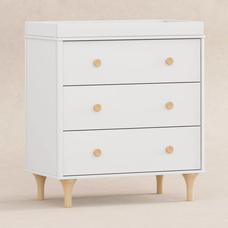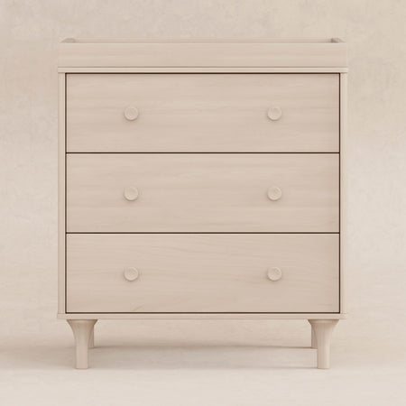 Enjoy the playful modern design of the Lolly 3-Drawer Changer Dresser! With natural curves and delicate natural feet that compliments the Lolly 3-in-1 Convertible Crib. Designed especially for the nursery with an included removable changing tray, smooth-glide drawers, hidden hardware, and included anti-tip kit.
