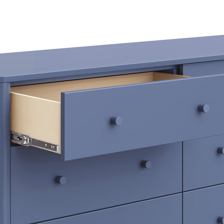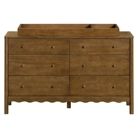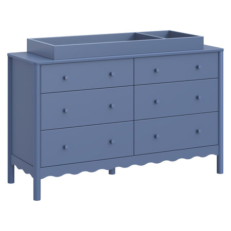 With rounded posts and wave-like edges, the Swell 6-Drawer Assembled Dresser has a modern appeal with an ocean-inspired design that pairs perfectly with the Swell 4-in-1 Convertible Crib. Featuring six spacious and smooth-gliding drawers, this dresser provides ample space for all of your baby's necessities. With additional versatility to add an optional removable changing tray, the Swell Assembled Dresser is perfect storage solution for your newborn and beyond.