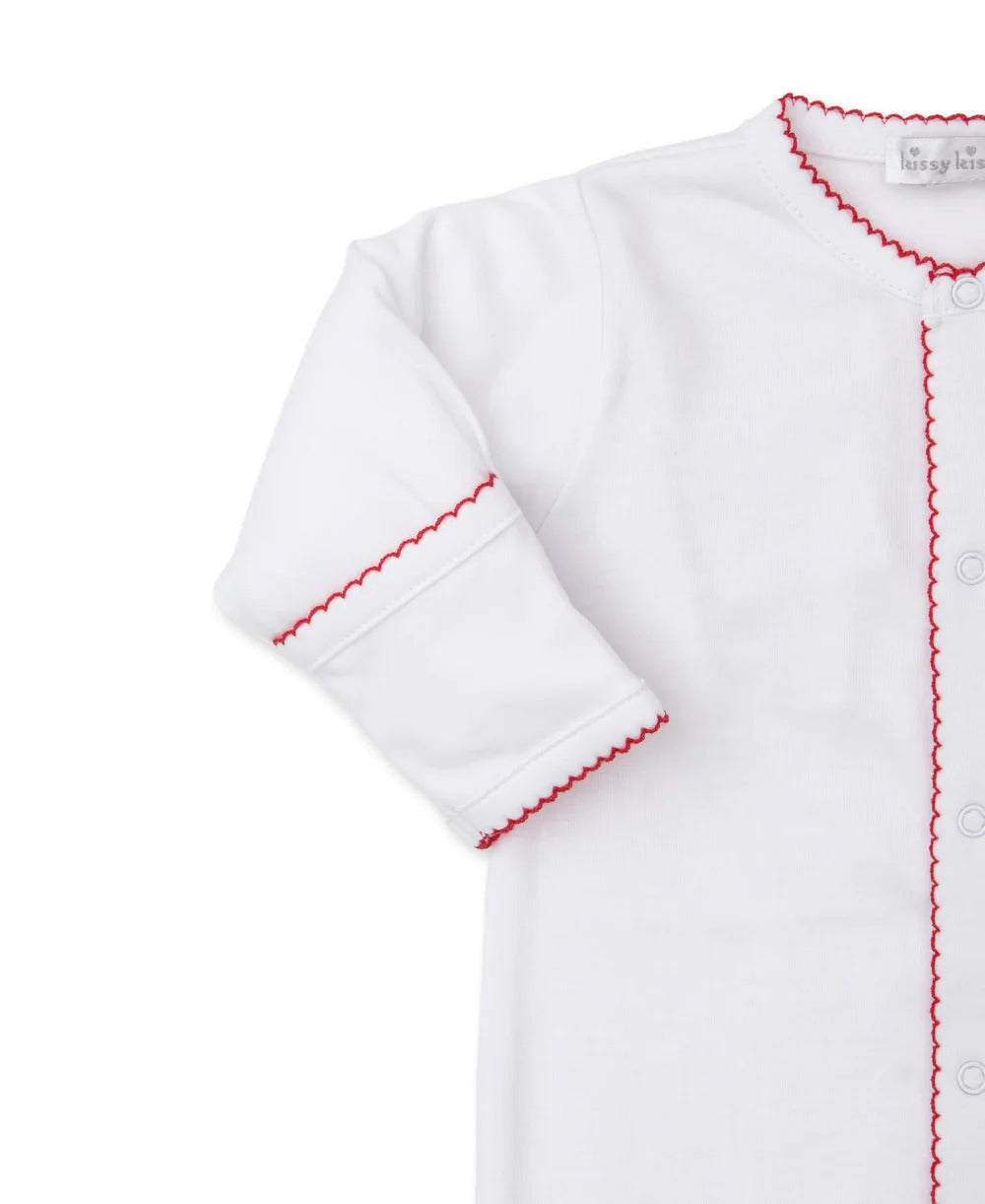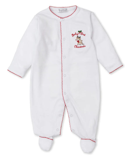 Make Baby's First Christmas even more memorable by dressing them in our ultra-soft footie. Made from the softest Pima cotton and finished with delicate scalloped edges and themed embroidery.