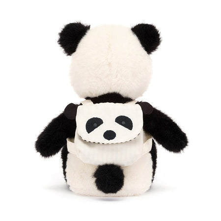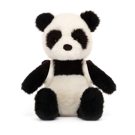 Backpack Panda is all packed and ready to hike! This tubby cub has brought their cotton panda backpack, lined with funky stripes! It goes so well with their black-and-white fur, embroidered eye mask and beany paws.