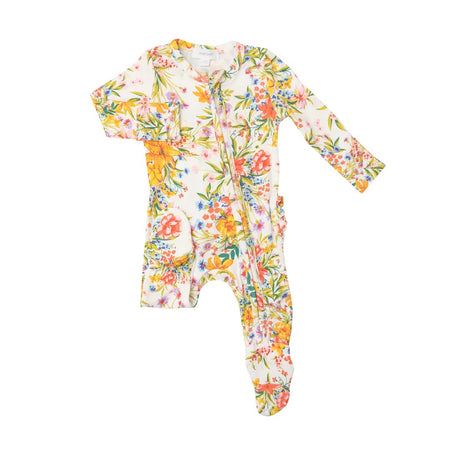 ANGEL DEAR BAMBOO RUFFLE BACK ZIPPER FOOTIE - GARDEN JOY