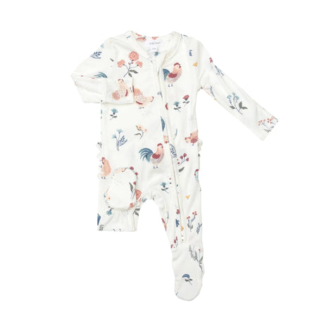 ANGEL DEAR BAMBOO RUFFLE BACK ZIPPER FOOTIE - HEIRLOOM CHICKENS
