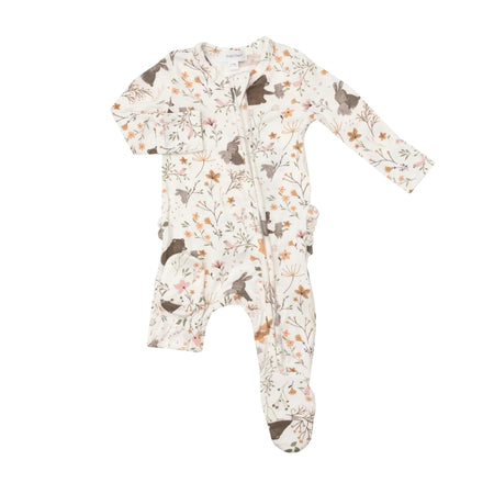 ANGEL DEAR BAMBOO RUFFLE BACK ZIPPER FOOTIE - WOODLAND GARDEN