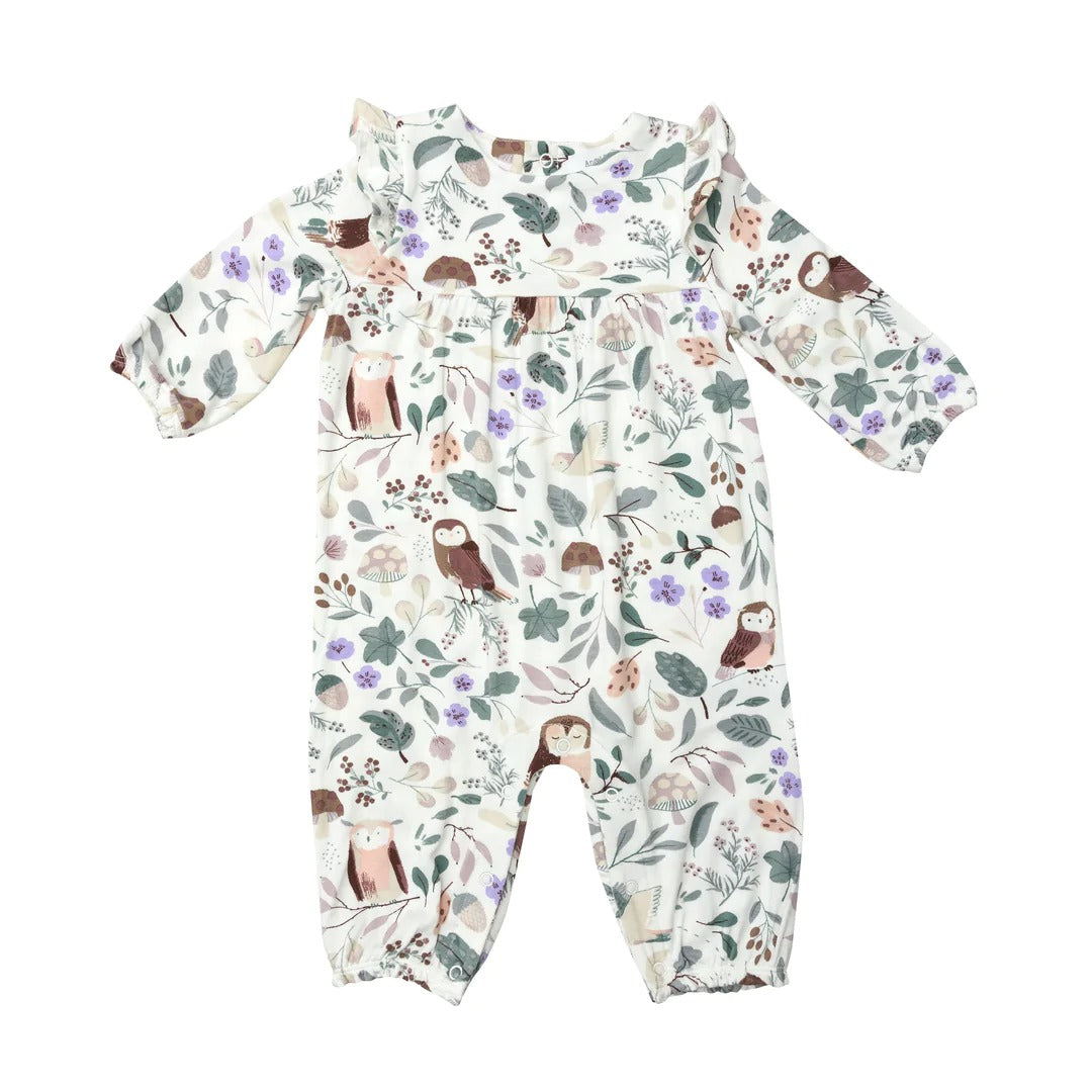 Angel Dear Bamboo Ruffled Shoulder Romper - Owls