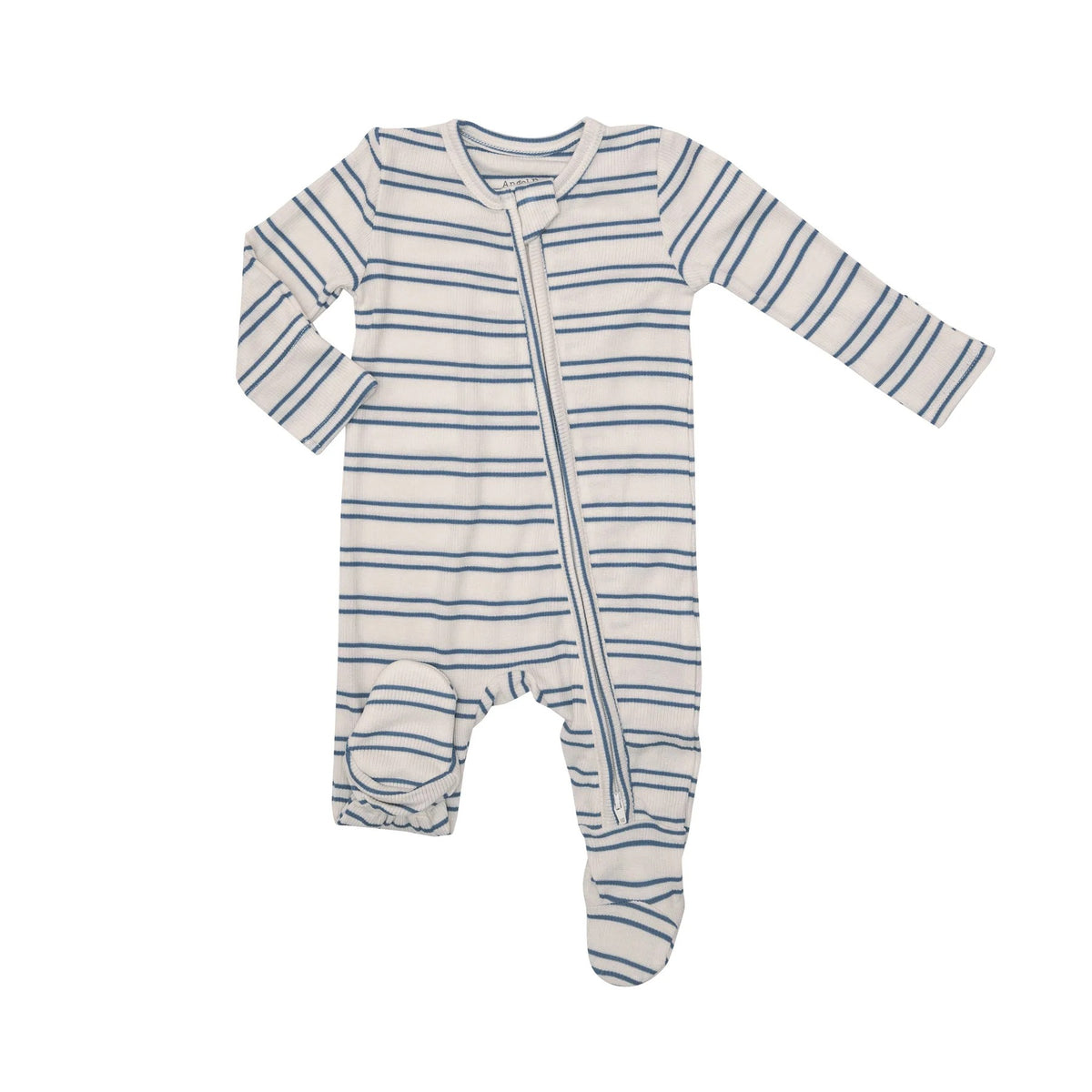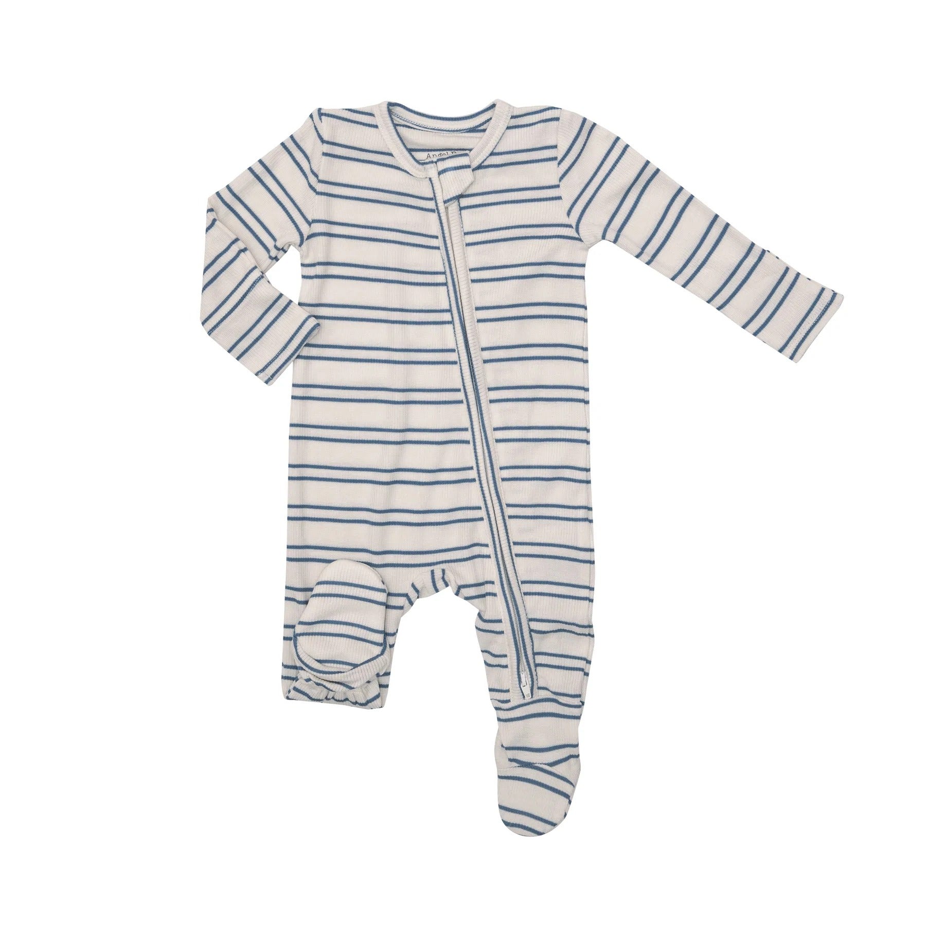 ANGEL DEAR ZIPPER FOOTIE - BLUE RIB STRIPE