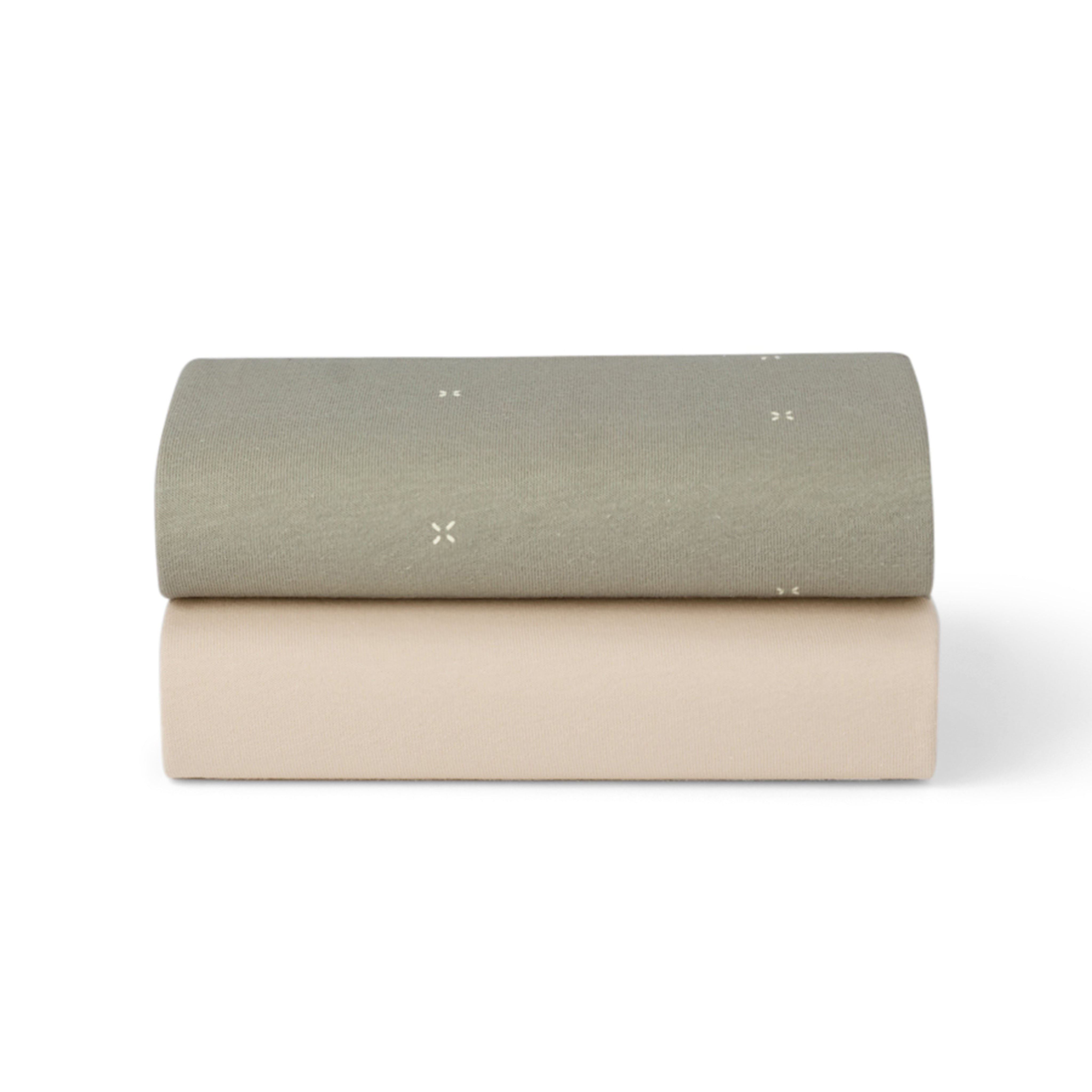 SNUZ BASSINET 2 PACK FITTED SHEETS - SAGE CROSS