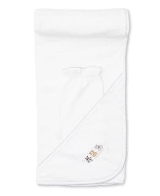 The Kissy Kissy Bear Bedlam Hooded Towel & Mitten Set is the perfect gift for your new baby.