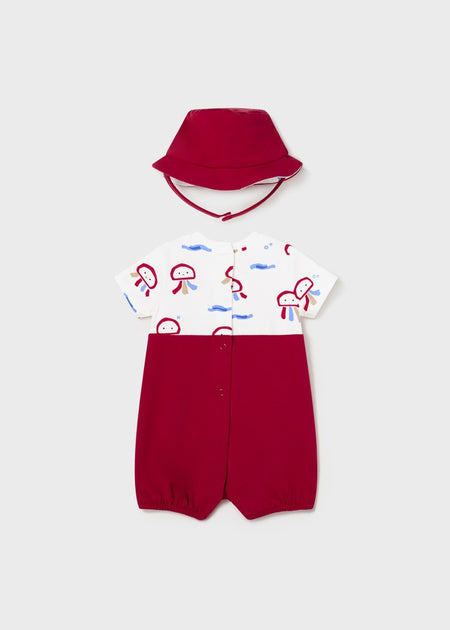 MAYORAL BETTER COTTON ROMPER W/ HAT - MARS