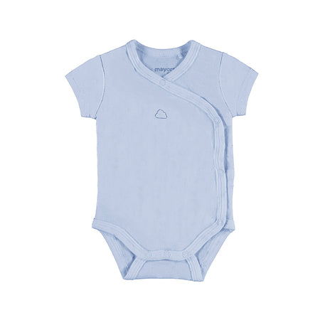 ECOFRIENDS garment 100% sustainable cotton. Short sleeved Bodysuits for newborn boy. Crossover neckline and full side slit that closes with snap buttons to make it easy to put the bodysuit on. In the larger sizes (from 4-6 to 18 months) the side fastening is replaced by an opening at the shoulder.