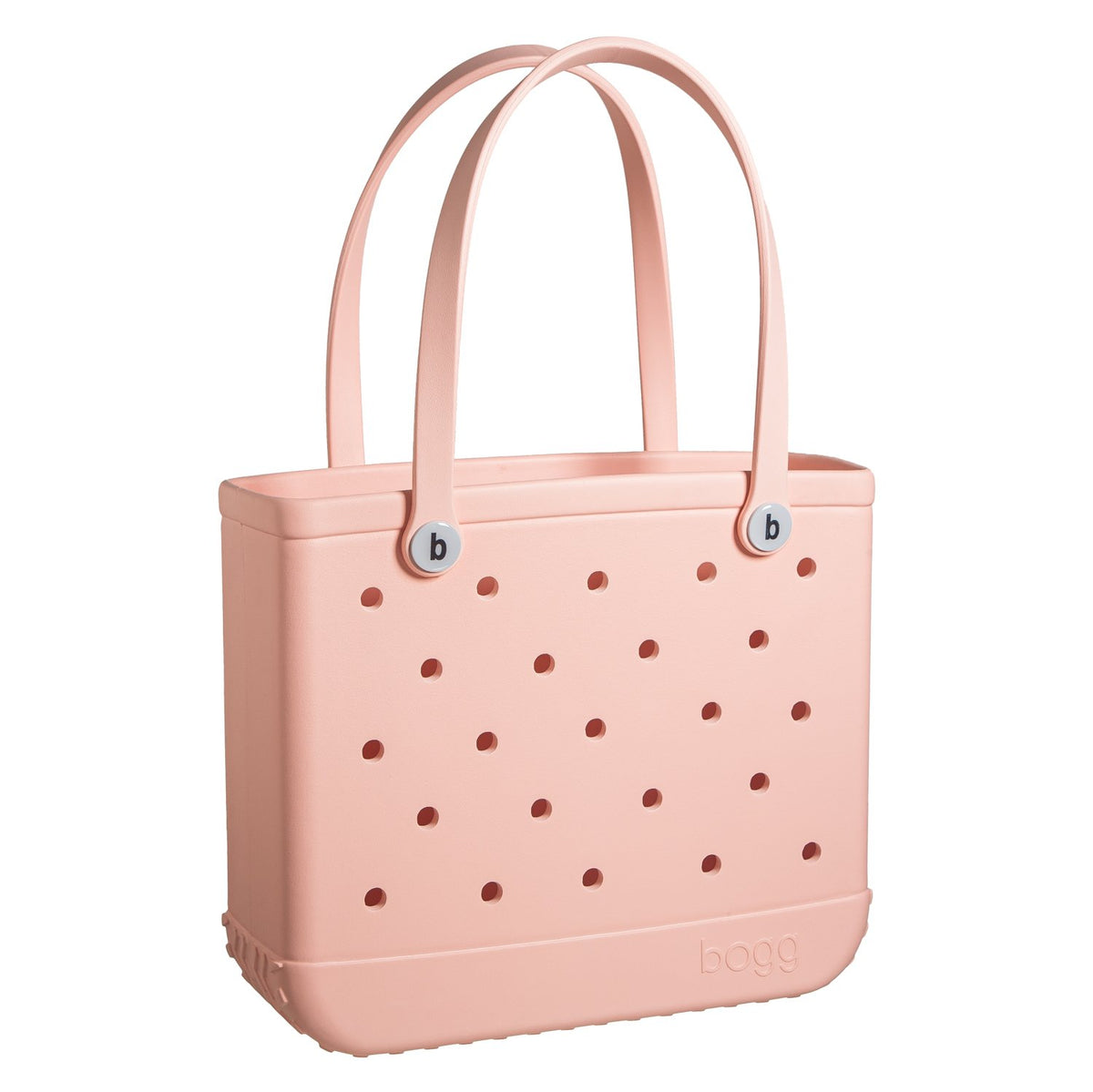 Introducing the Bogg Bag Baby Bogg Bag - Peach . Maybe Baby, but not very small! Measuring in at a healthy 15x13x5.25, the Baby Bogg Bag features everything you know and love about the Original Bogg Bag, but in a smaller size – think individual use vs. family use: It's washable, durable, stylish, customizable, and perfect for your next adventure! The tip-proof, ribbed bottom helps keep your Baby Bogg Bag upright and ready to use.
