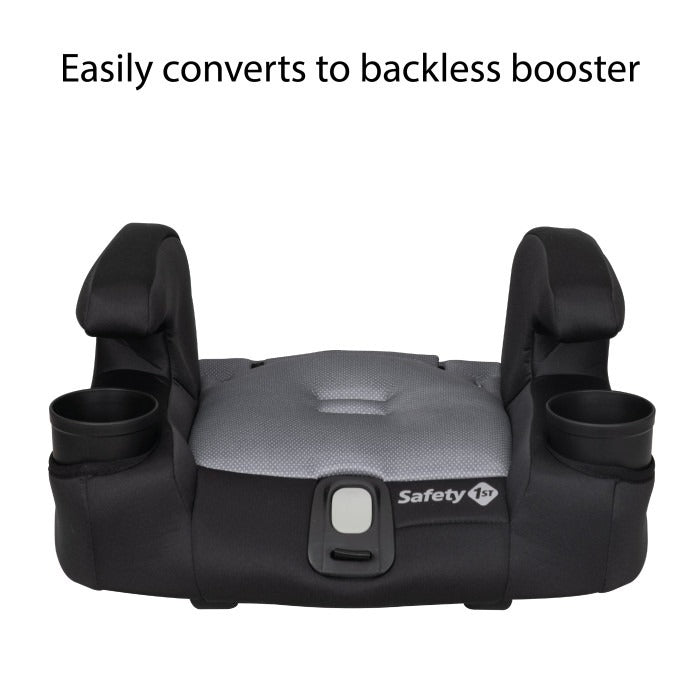 The Safety 1st Boost-and-Go 3-in-1 Harness Booster car seat is built to grow with your child while keeping them safe and comfortable on the road. With three modes of use— forward-facing harness booster (30–65 lbs. and 34"–49"), high-back belt-positioning booster and backless booster (40–100 lbs. and 43"–57"), the seat grows with your child and easily converts from one mode to the next. Kids will love the dual cup holders and parents will love the 7-position headrest, narrow seat design, and lightweight portability.
