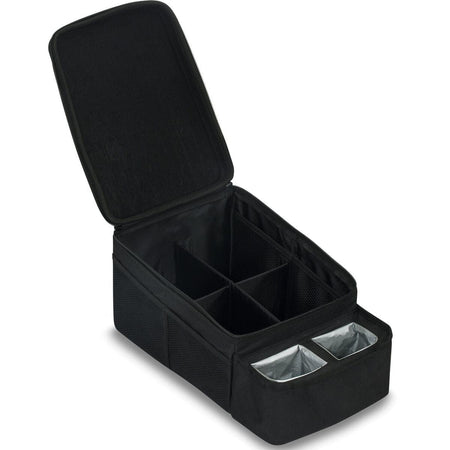 The Britax Car Seat Caddy keeps drinks, snacks and other gear organized while you’re on a trip or running everyday errands with your little one. With two waterproof, insulated cup holders, a large center storage area and eight mesh pockets, there’s enough room for all your child’s favorite games and toys. The hard top can be zipped closed to keep your child’s belongings in place and secure while on the go. Approved for use with Britax seats.