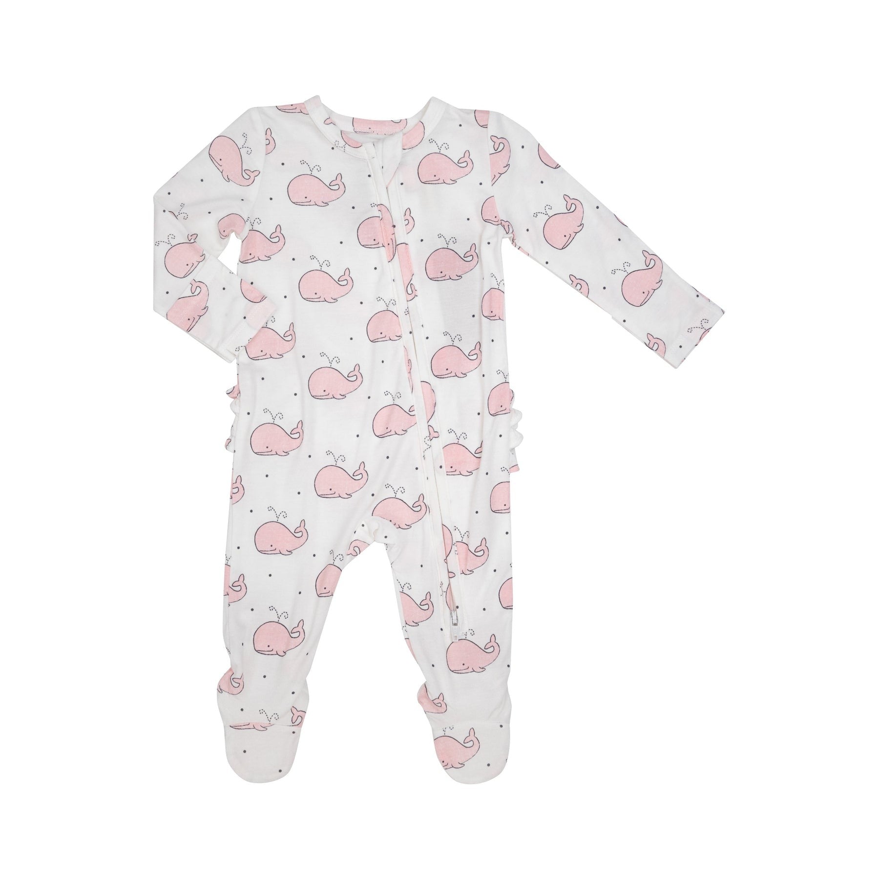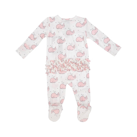 ANGEL DEAR BUBBLY WHALE PINK RUFFLE 2 WAY ZIPPER FOOTIE