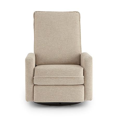 The Best Chairs Calli Swivel Glider Recliner is sleek, modern and perfectly sized to give a nursery, or any room, an instant update. Stylish details extend from the knife edge welt on back and seat to the power buttons that allow you to recline to any position at the simplist push. The smooth swivel glider action is soothing for the ultimate in relaxation. See fabric swatch for actual chair fabric