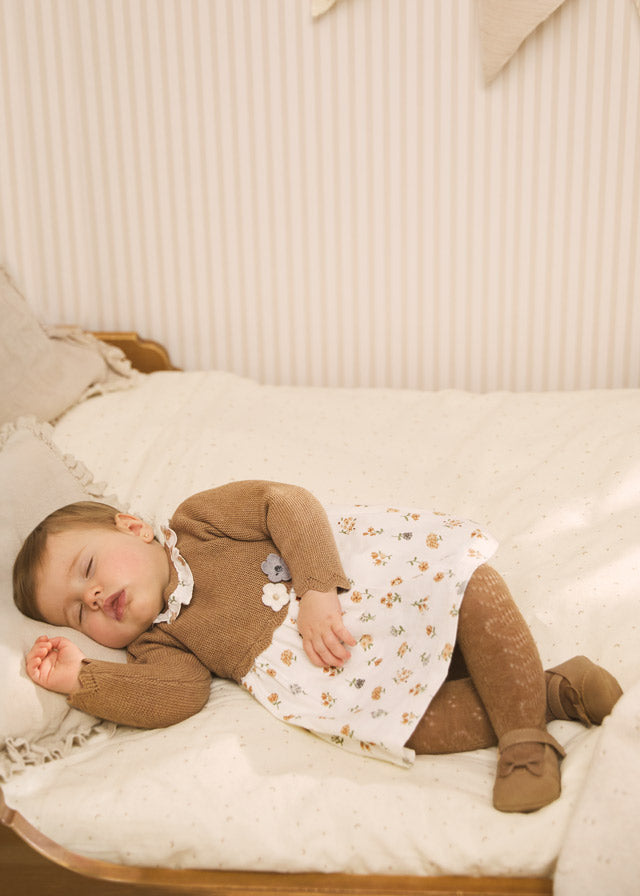 MAYORAL CARAMEL WARP-KNITTED NEWBORN DRESS