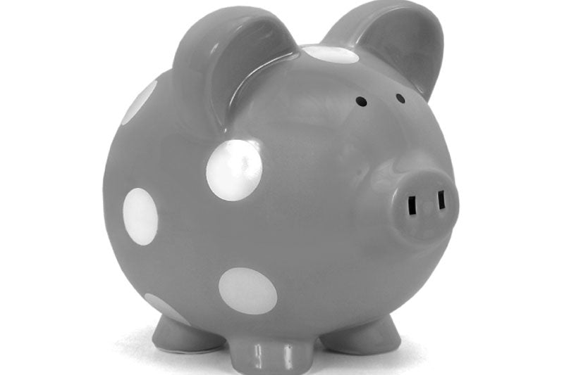CHILD TO CHERISH CHILD TO CHERISH GREY WITH WHITE DOTS PIGGY BANK