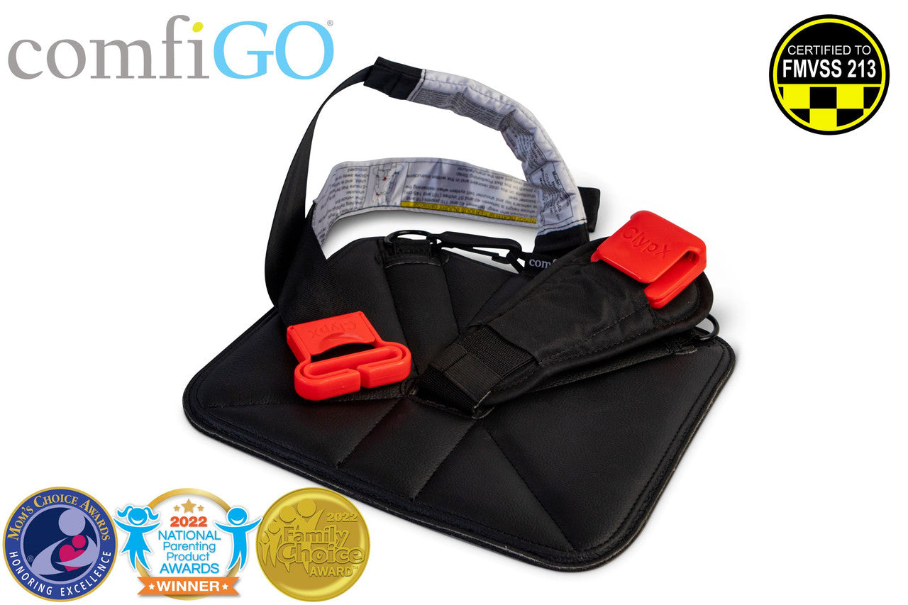 - SUPER SAFE: comfiGO® works by helping to position the seat belt properly on your child’s body, much like a traditional booster seat. It also offers anti-slip rubber to prevent sliding around on the seat, in addition to elastic lap belt band that helps minimize slouching and keeps the lap belt section low on the hips. FMVSS 213 certified.