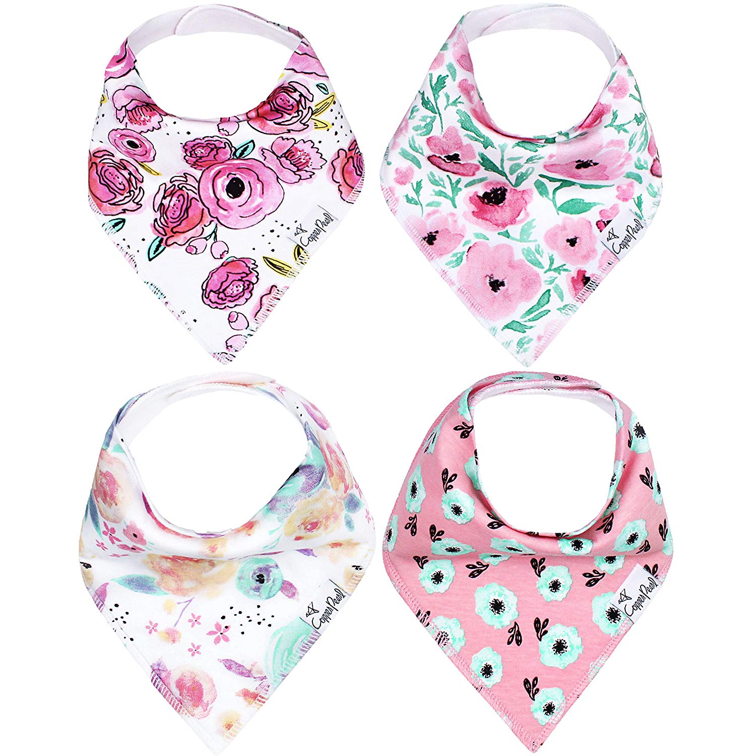 The Copper Pearl Bloom Baby Bandana Bib Set is a great gift for that next baby shower and features four different cute & adorable floral designs.