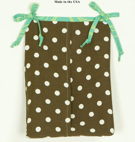 The Cotton Tale Dahlia Diaper Stacker with soft ties and cord holds up to 4 dozen diapers. The Dahlia Diaper Stacker can be easily attached to the changing table or chest, never on the crib.