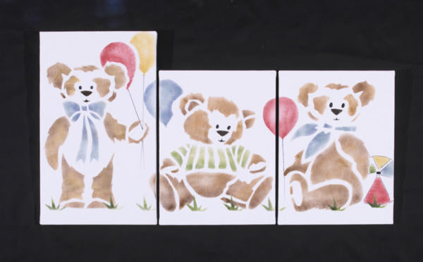 The Cotton Tale Designs Boys Only Wall Art is hand painted on white canvas. White twill ties attached for hanging. This wall art can be hung by ties or framed. This wall art comes in three pieces, 2 pieces measure 12 x 16 and 1 piece measures 12 x 20. They can be hung together or separately. The Boys Only Wall Art adds a great finishing touch to your nursery decor and is a necessary companion to the 4 Piece Set.