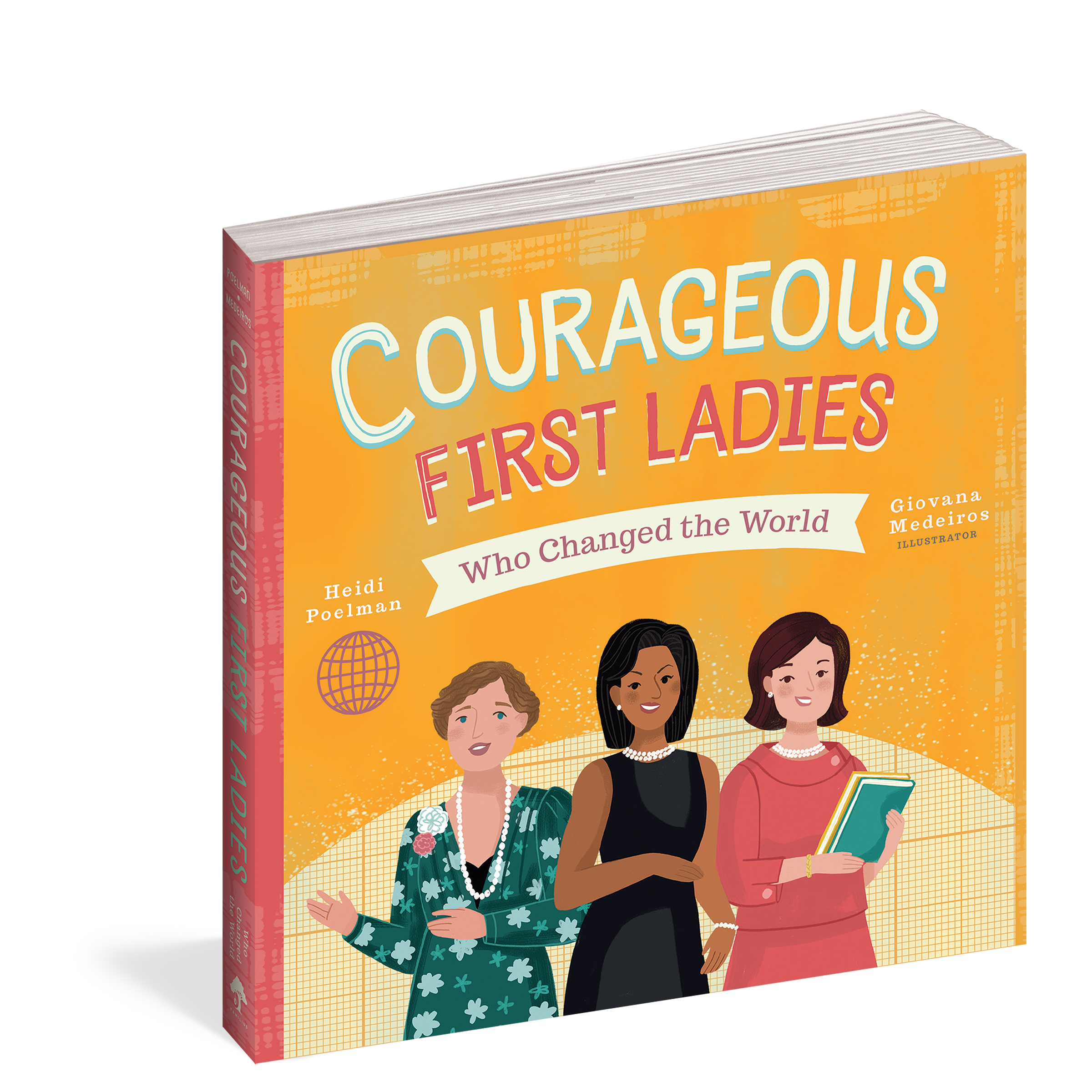 From the steadfast valor of Martha Washington to the ingenious counsel of Michelle Obama, Courageous First Ladies Who Changed the World is a young child’s first introduction to the extraordinary women who used their time in the White House to change the world. Simple text and adorable illustrations tell the contributions of eleven presidential women: Martha Washington, Abigail Adams, Dolley Madison, Eleanor Roosevelt, Jacqueline Kennedy, Betty Ford, Lady Bird Johnson, Laura and Barbara Bush, Hilary Clinton, and Michelle Obama. A quote from each First Lady is included on each spread along with colorful, delightful artwork.