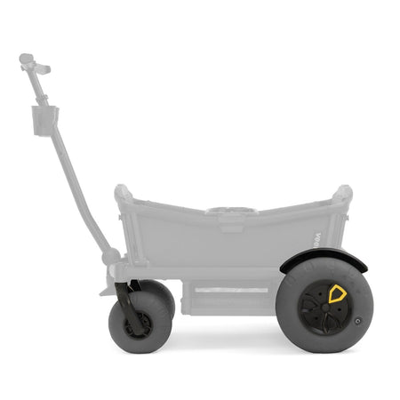 Beach Wheels offer unmatched sand performance for vehicles designed for kids, and they also provide excellent suspension on various terrains like boardwalks, trails, mud, and other loose surfaces. With these wheels, you can effortlessly navigate all day from the sand to the boardwalk and parking lot. And when you are done, just quickly remove the wheels for a compact fold for the car ride home or storage.
