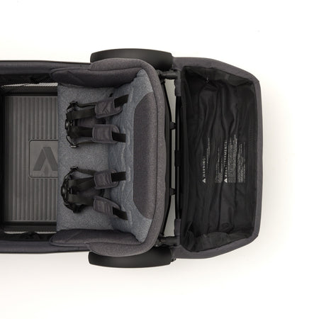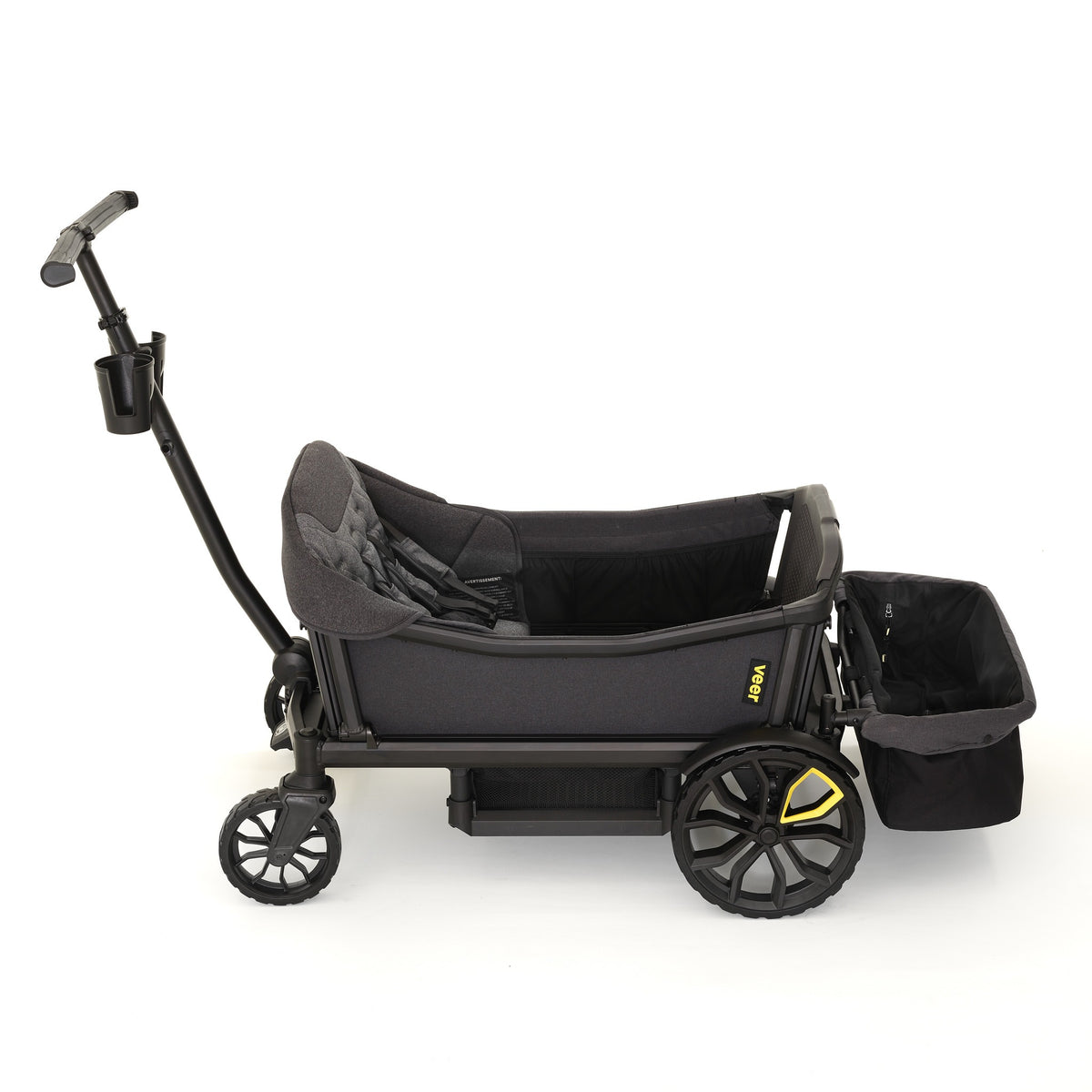 The Veer Cruiser XL Comfort Seat is designed for children from 6 months up to 35 lbs. Soft, padded fabric creates an ultra-comfortable seat and head rest. It includes a 5-point harness for safety. Hidden magnets on the side wings ensure an easy, snug fit with the side walls. Two Comfort Seats can be used simultaneously (one on each seat). Cruiser will fold when using one Toddler Seat. Comfort Seats can also be used with Veer’s Retractable Canopies.