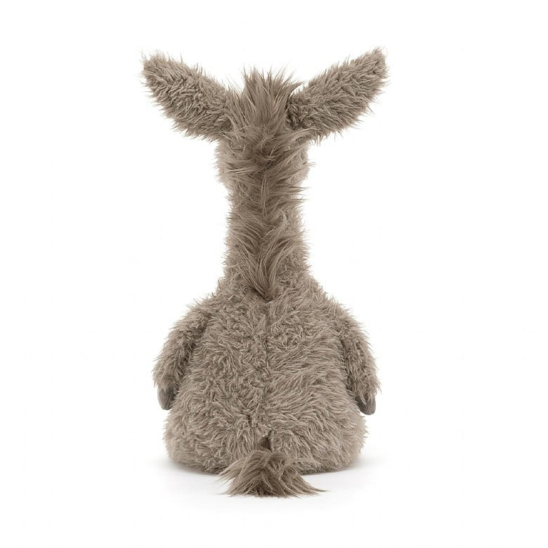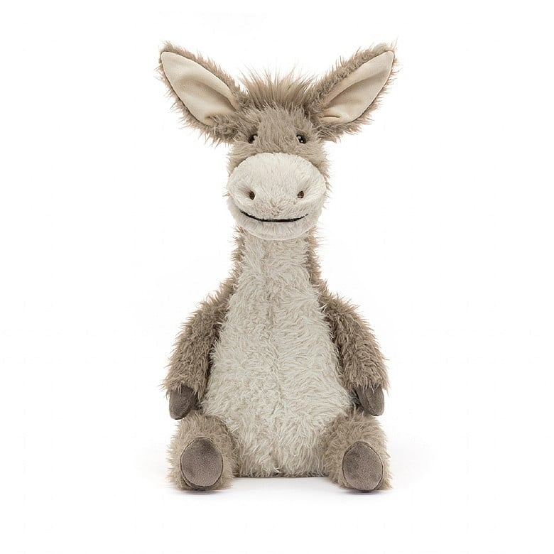 Dario Donkey is a classic cuddle companion, with grey suedette hooves, a paintbrush tail, and a silky-soft mane. With a chunky muzzle, long, fuzzy ears, and two-tone fur in mocha and cream, Dario is adventure ready.