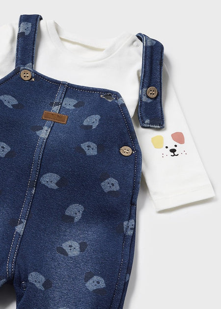 MAYORAL DARK DENIM NEWBORN DUNGAREES AND T-SHIRT SET