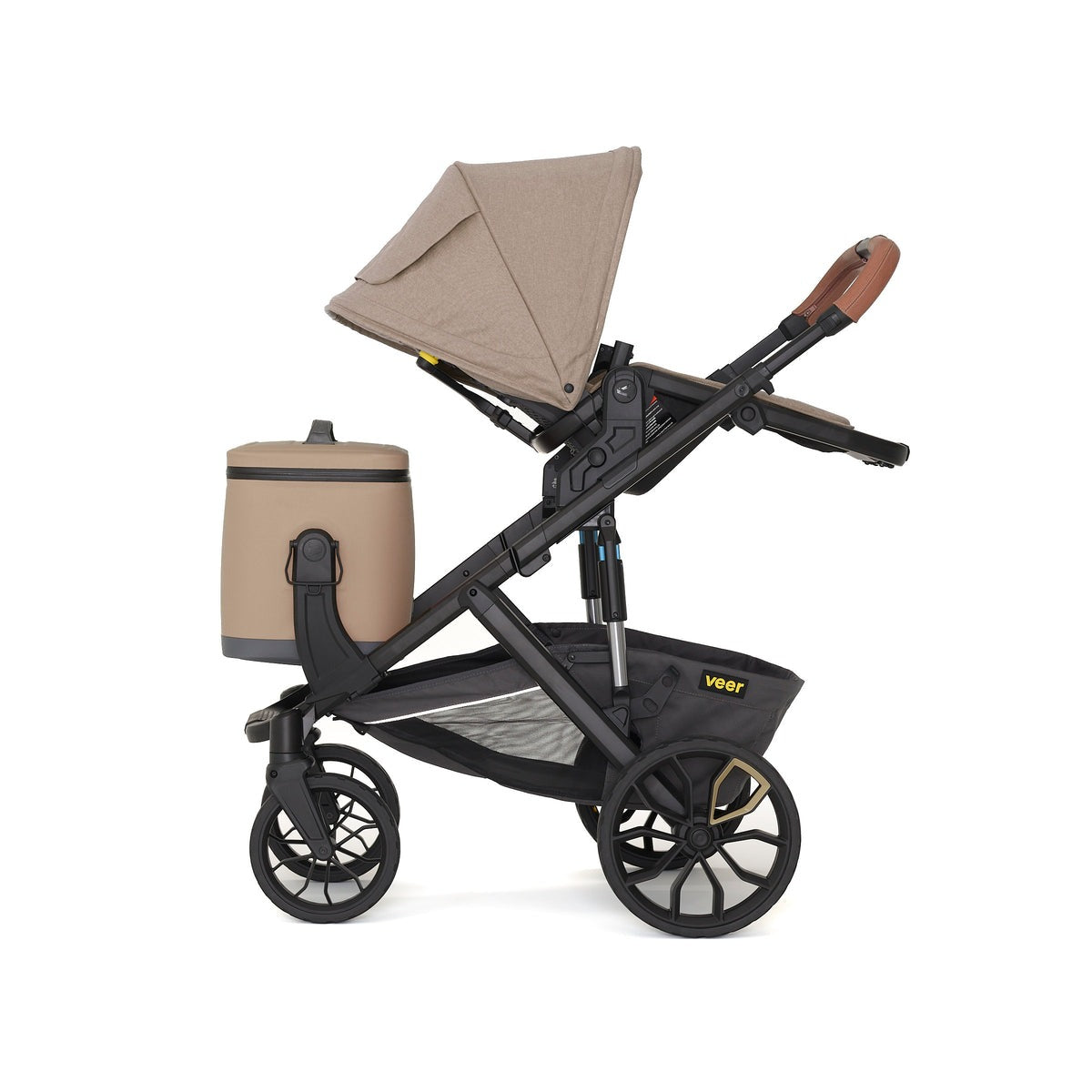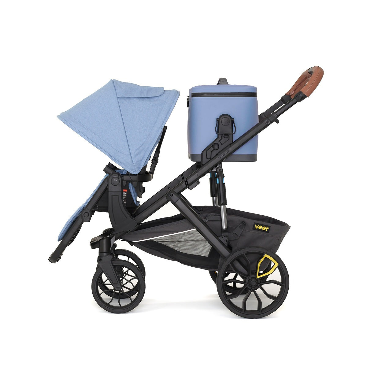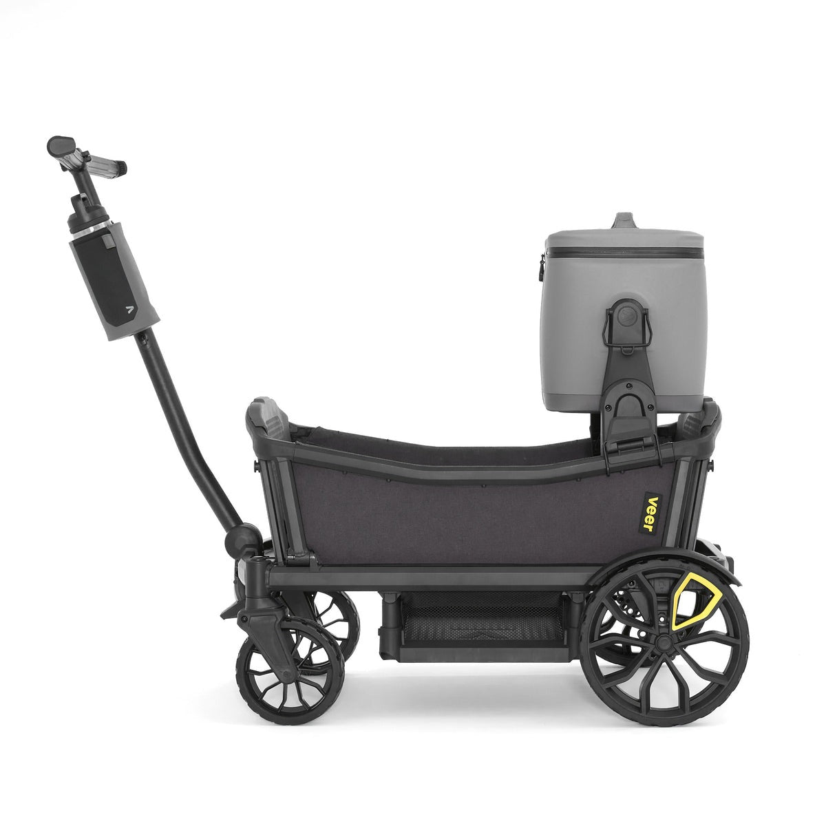 Triple the size of our Lunch Cooler, this 18 liter soft cooler is large enough to pack multiple meals, snacks, and drinks for the entire family, yet lightweight and easy to carry by its handle or padded shoulder strap. Veer’s patented quick release Switchback hubs allow you to quickly snap onto &Roll, &Jog, &Bike, &Chill or Cruiser and snap off by lifting the shoulder strap or handles. Side handles lock the cooler in place when flipped down, and unlock when flipped up.