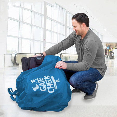 Multi-use, compact travel bag! Our J.L. Childress Gate Check Bag got a little upgrade…and it’s feeling GOOOOD! Our Deluxe Gate Check Travel Bag for Car Seats and Strollers is like a Gate Check Bag with a cherry on top! Compatible with ALL car seats and most single strollers, this bag (almost!) does it ALL. Protecting your child’s car seat and stroller from dirt, germs and damage when you check it at the airline gate is made easy by the bag’s large size, lockable draw-string closure, dual carry handles, and attached stretch pouch that makes unfolding and refolding easy. The dual, padded shoulder carry straps allow you to comfortably carry your car seat or stroller, making this truly a DELUXE Gate Check Bag. The big white ID box for your name helps quickly identify YOUR gear. The durable, water-resistant fabric and large GATE CHECK logo help ensure that your gear is protected and safely returned to you at the end of your flight. Can also be used as a storage bag.