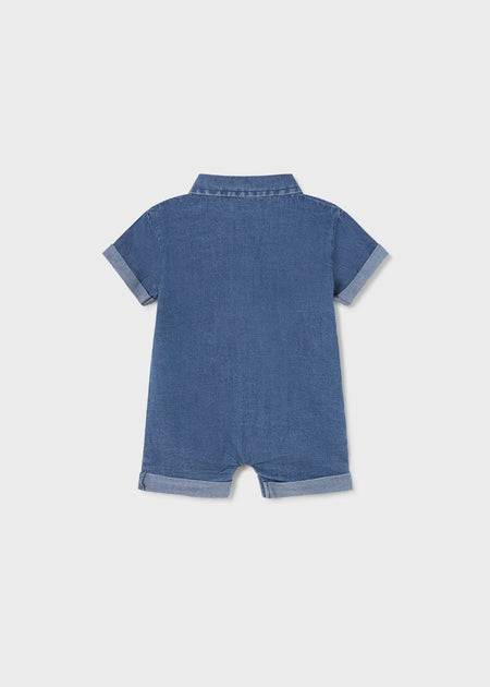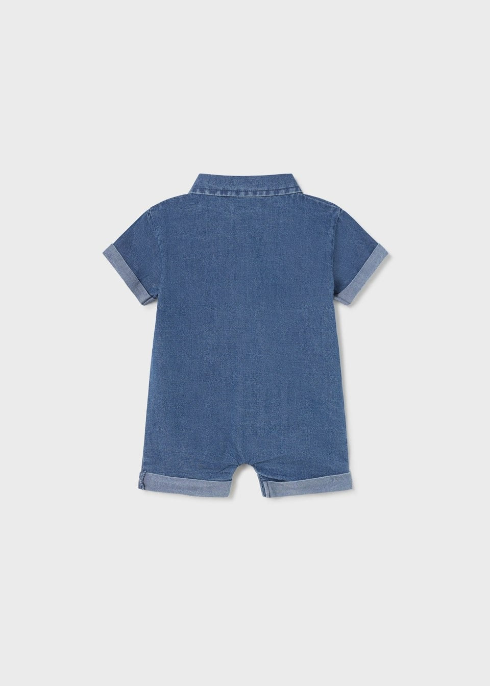 ECOFRIENDS garment, contains sustainable cotton Short sleeved One-Piece for newborn. Shirt collar. Snap button closure at crotch for easy putting on and taking off. Button fastenings down the front. Elastic, adaptable fabric for maximum comfort.