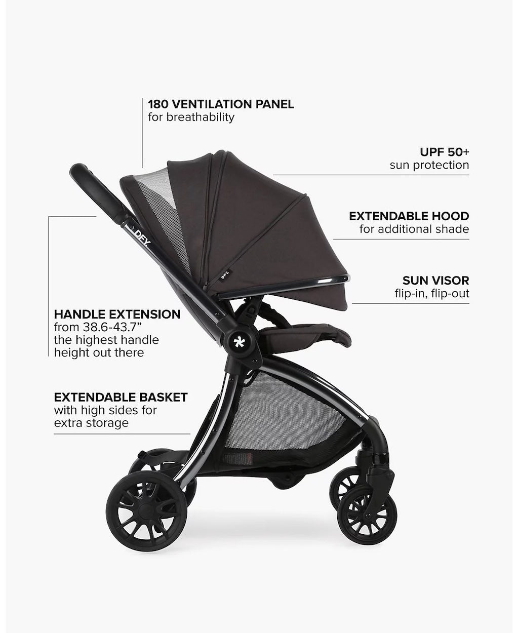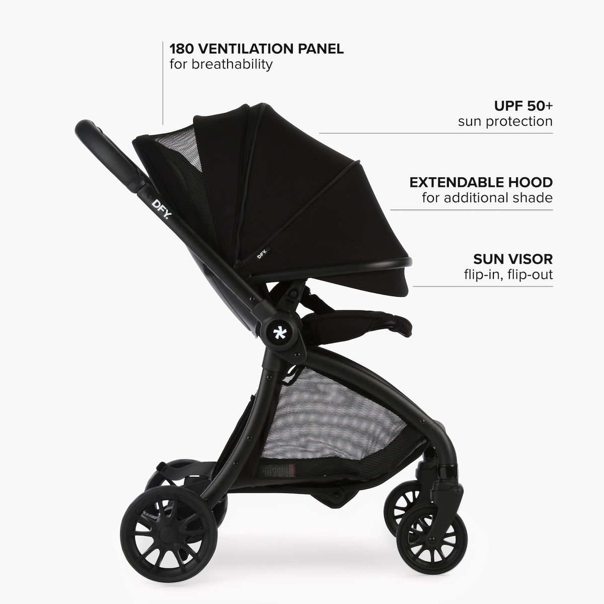 - More than a stroller - Complete Your Stroller System - Elevate your experience with a range of thoughtfully designed accessories, including a pet basket, cool box, sunshade, footmuff, cup holder, and car seat adapters for seamless travel transitions. DFY understands that parents need more than just a stroller.