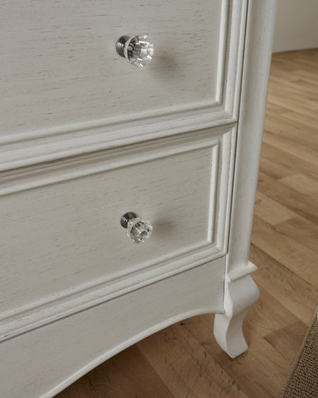 The Pali Diamante 4 Drawer Chest - Vintage White White has 4 drawers that provides excellent storage options for your nursery. The Diamante 4 Drawer Chest goes great with either of the Pali Diamante Cribs.