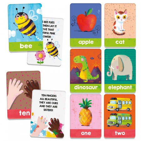 Thirty-six large cards, for different progressive educational activities that get children used to listening and recognising a large number of words