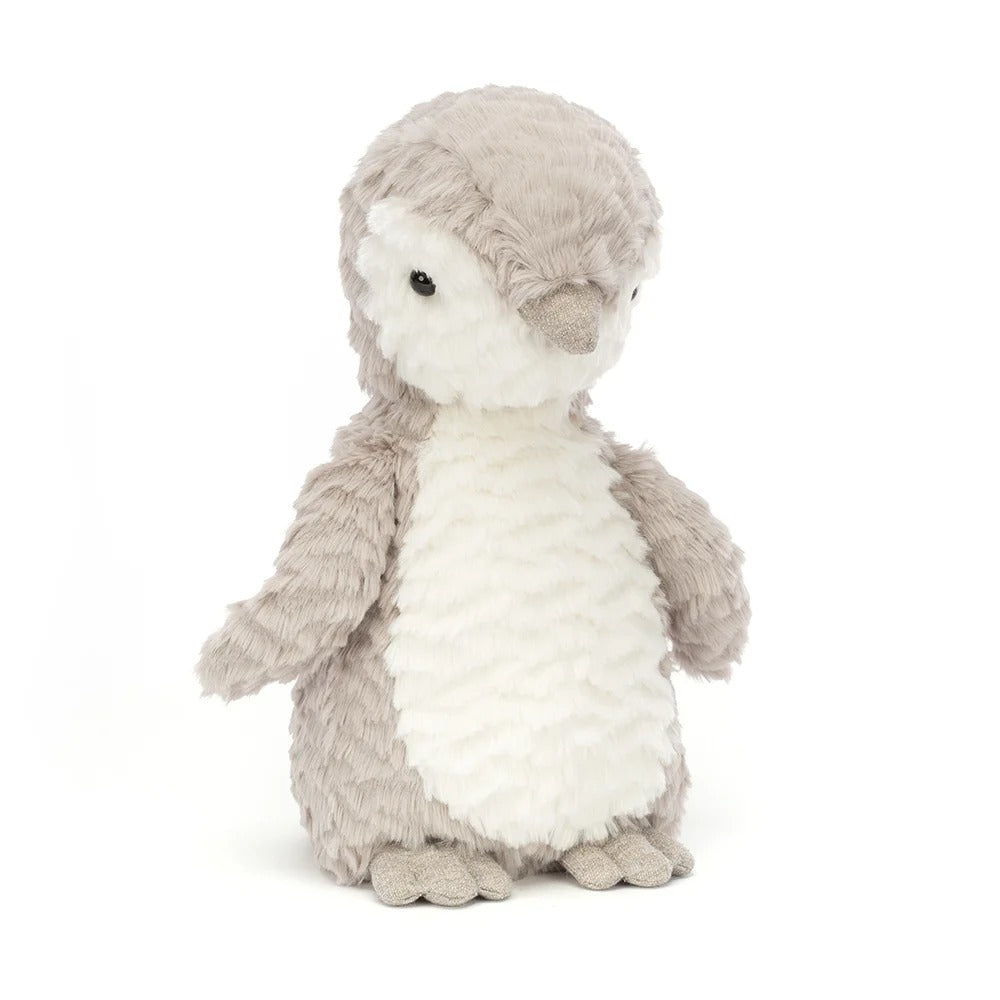 Ditzi Penguin is such a happy hatchling. This chipper chick has cloudy-soft fur in pebble-grey and creamy ruffles. With flappy flippers, scruffly head, a suedey beak and bobbly claws, this Antarctic baby is toasty-warm and ready to waddle wherever you go!