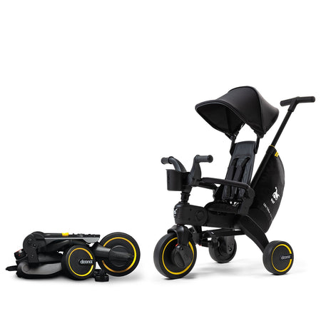 The Doona Liki Trike - Midnight offers the full experience and more. In addition to the S5 features, this edition includes high end black faux-leather handles and armrest covers. Liki's functionality and innovative design, make for a uncompromising and safe ride. With its unique and patented small-fold mechanism, the ingenious trike simply folds and unfolds at the click of a button. It comes fully assembled, ready to use, straight out of the box. Liki allows you to travel comfortably with your child as it fits easily in the boot of your car or the airplane’s overhead bin. Made from high grades of fiber-reinforced polymers, rust-free aluminum, and high-durability wheels, Liki innovatively brings Doona's™ infant car seat and stroller safety to the trike market.