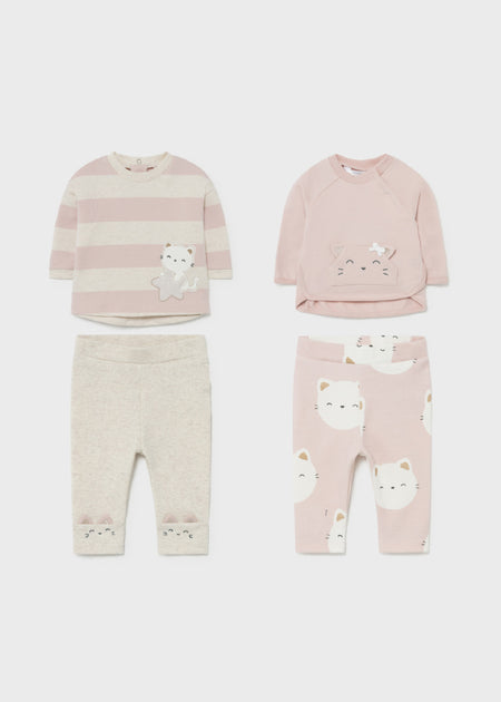 MAYORAL ECOFRIENDS 4 PIECE LEGGINGS SET NEWBORN GIRL - DUSTY PINK
