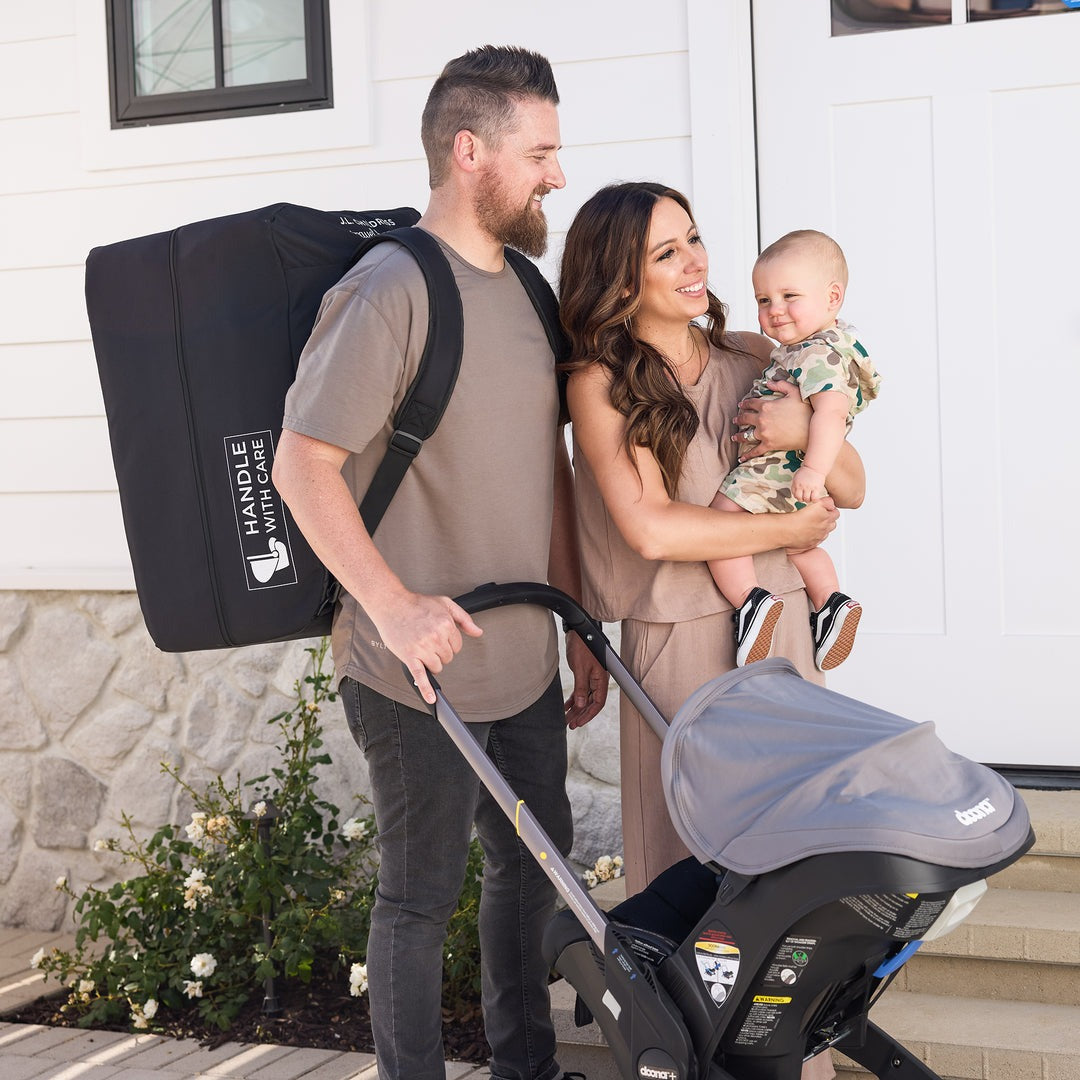 - The Elite Padded Travel Bag has thick padding and durable, premium materials to properly protect your infant car seat and stroller combo. Padded, adjustable backpack straps ensure comfortable, hands-free carrying.